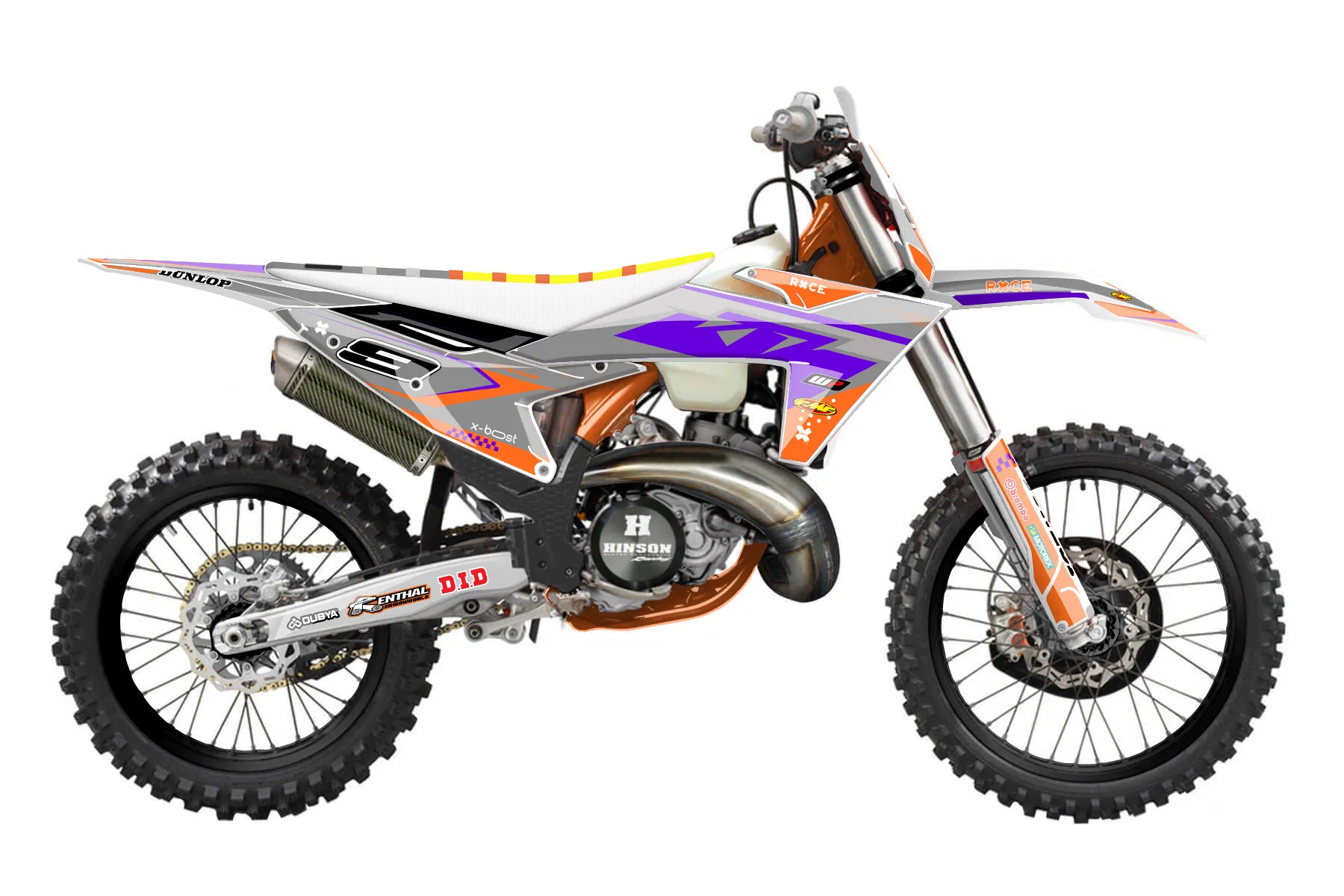 «CustomDesign23/300» — готовый комплект графики серии Staple для KTM Offroad Graphic Kit KTM XC 300 2023. В комплекте: графика на бак и боковые облицовки, крылья (переднее и заднее), передний щиток, номерные таблички, защита вилки. Материал: ПВХ-винил 80 мкр с холодной ламинацией 300 мкр, общая толщина 380 мкр; покрытие глянцевое или матовое на выбор. Устойчив к UV-излучению, воде, бензину и мойке высокого давления. Клей акриловый на сольвентной основе — постоянный, для гибких пластиков. На простых поверхностях монтируется без нагрева; для сложных изгибов рекомендуем фен. Этот пресет можно заказать как есть или взять за основу в конструкторе: поменять цвета, добавить стартовый номер и свой бренд. Производство — 3–5 рабочих дней, доставка по России СДЭКом или Почтой, по СНГ — курьерскими службами.