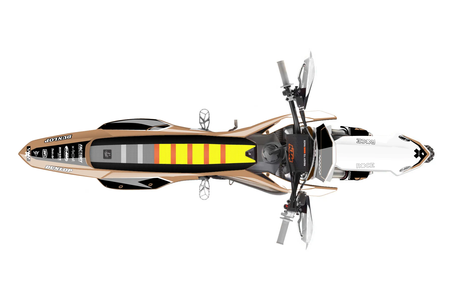 «Polite» — готовый комплект графики серии Staple для KTM Offroad Graphic Kit KTM XC 300 2023. В комплекте: графика на бак и боковые облицовки, крылья (переднее и заднее), передний щиток, номерные таблички, защита вилки. Материал: ПВХ-винил 80 мкр с холодной ламинацией 300 мкр, общая толщина 380 мкр; покрытие глянцевое или матовое на выбор. Устойчив к UV-излучению, воде, бензину и мойке высокого давления. Клей акриловый на сольвентной основе — постоянный, для гибких пластиков. На простых поверхностях монтируется без нагрева; для сложных изгибов рекомендуем фен. Этот пресет можно заказать как есть или взять за основу в конструкторе: поменять цвета, добавить стартовый номер и свой бренд. Производство — 3–5 рабочих дней, доставка по России СДЭКом или Почтой, по СНГ — курьерскими службами.