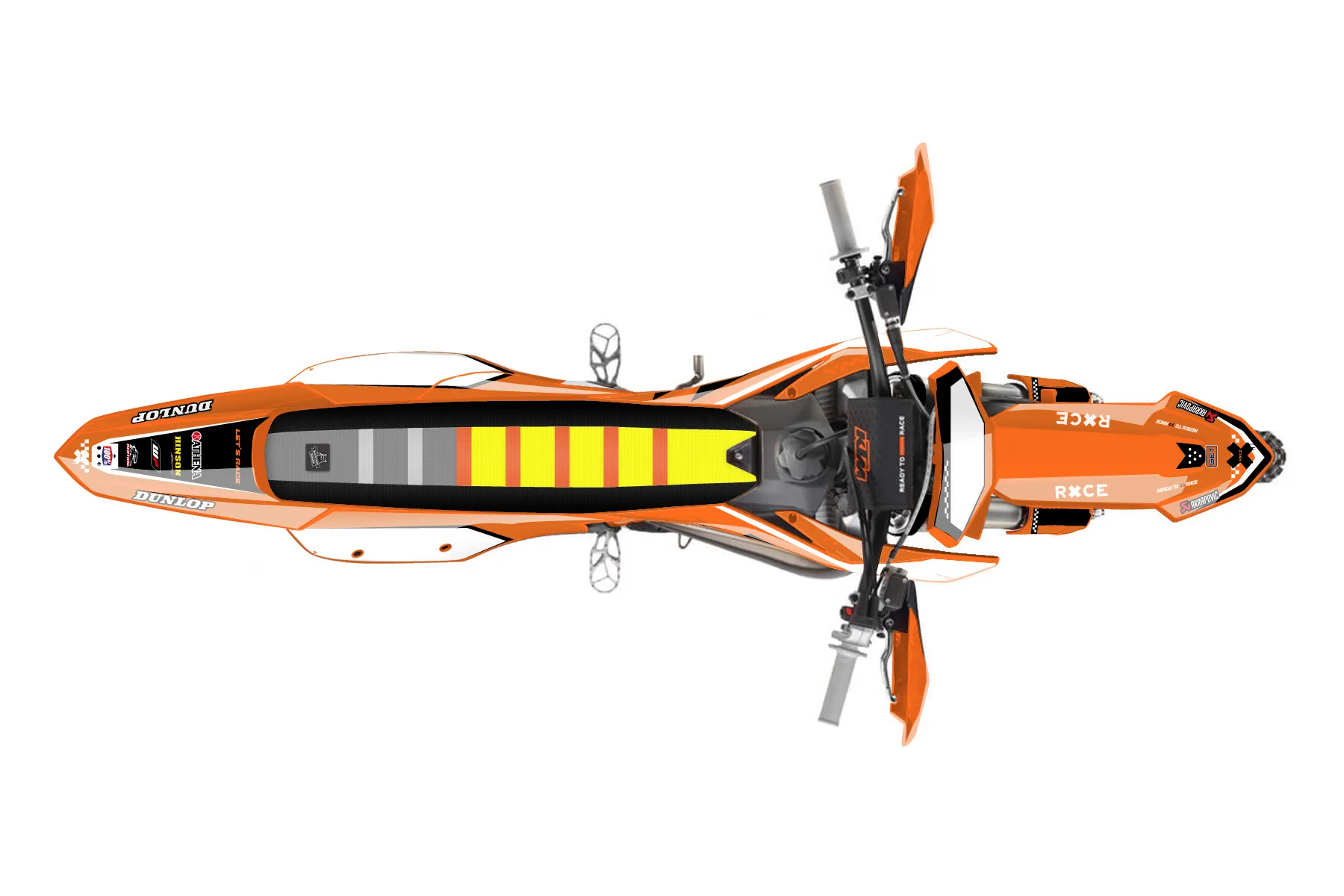 «Raw» — готовый комплект графики серии Staple для KTM Offroad Graphic Kit KTM XC 300 2023. В комплекте: графика на бак и боковые облицовки, крылья (переднее и заднее), передний щиток, номерные таблички, защита вилки. Материал: ПВХ-винил 80 мкр с холодной ламинацией 300 мкр, общая толщина 380 мкр; покрытие глянцевое или матовое на выбор. Устойчив к UV-излучению, воде, бензину и мойке высокого давления. Клей акриловый на сольвентной основе — постоянный, для гибких пластиков. На простых поверхностях монтируется без нагрева; для сложных изгибов рекомендуем фен. Этот пресет можно заказать как есть или взять за основу в конструкторе: поменять цвета, добавить стартовый номер и свой бренд. Производство — 3–5 рабочих дней, доставка по России СДЭКом или Почтой, по СНГ — курьерскими службами.