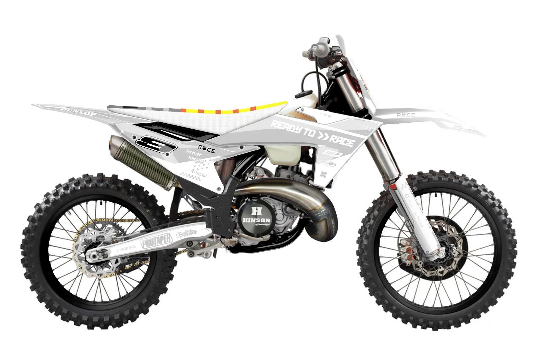 «Uphill» — готовый комплект графики серии Staple для KTM Offroad Graphic Kit KTM XC 300 2023. В комплекте: графика на бак и боковые облицовки, крылья (переднее и заднее), передний щиток, номерные таблички, защита вилки. Материал: ПВХ-винил 80 мкр с холодной ламинацией 300 мкр, общая толщина 380 мкр; покрытие глянцевое или матовое на выбор. Устойчив к UV-излучению, воде, бензину и мойке высокого давления. Клей акриловый на сольвентной основе — постоянный, для гибких пластиков. На простых поверхностях монтируется без нагрева; для сложных изгибов рекомендуем фен. Этот пресет можно заказать как есть или взять за основу в конструкторе: поменять цвета, добавить стартовый номер и свой бренд. Производство — 3–5 рабочих дней, доставка по России СДЭКом или Почтой, по СНГ — курьерскими службами.