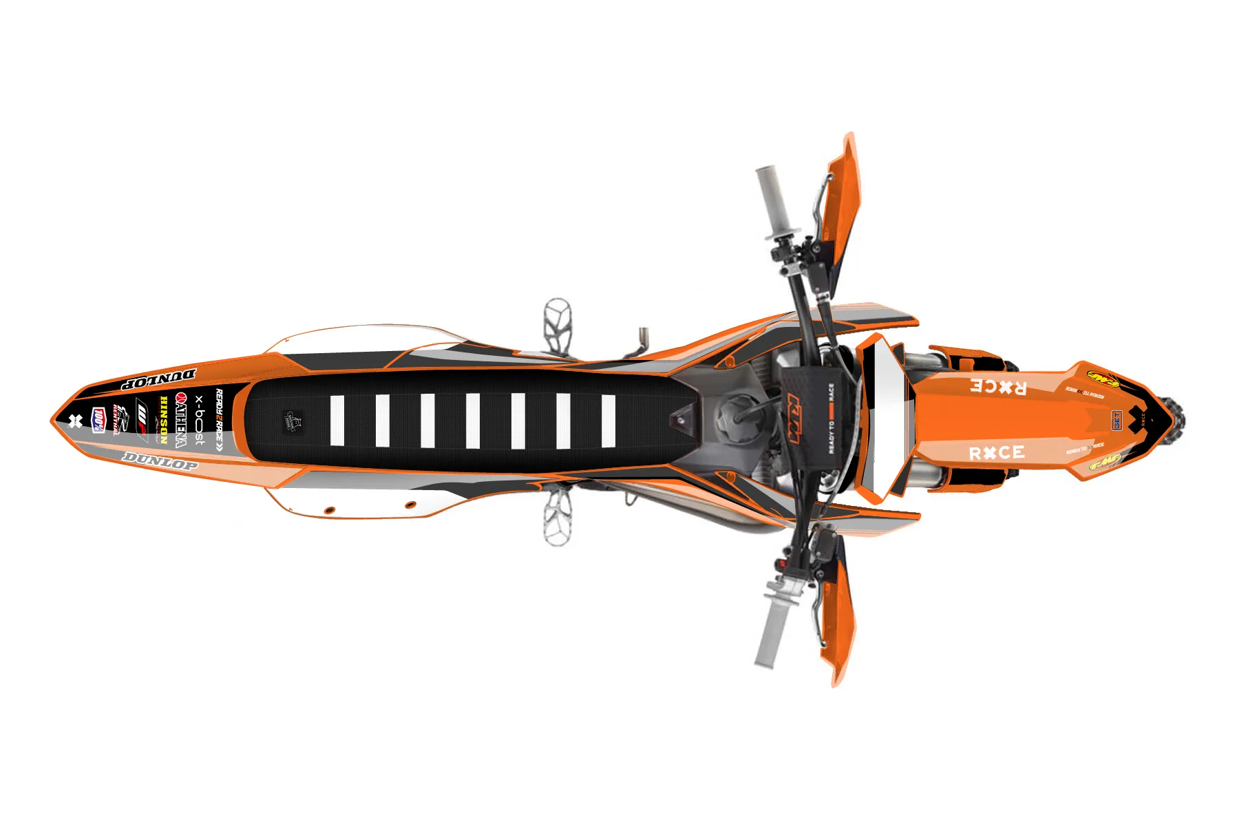 «250xc elephant » — готовый комплект графики серии Untucked для KTM Offroad Graphic Kit KTM XC 300 2023. В комплекте: графика на бак и боковые облицовки, крылья (переднее и заднее), передний щиток, номерные таблички, защита вилки. Материал: ПВХ-винил 80 мкр с холодной ламинацией 300 мкр, общая толщина 380 мкр; покрытие глянцевое или матовое на выбор. Устойчив к UV-излучению, воде, бензину и мойке высокого давления. Клей акриловый на сольвентной основе — постоянный, для гибких пластиков. На простых поверхностях монтируется без нагрева; для сложных изгибов рекомендуем фен. Этот пресет можно заказать как есть или взять за основу в конструкторе: поменять цвета, добавить стартовый номер и свой бренд. Производство — 3–5 рабочих дней, доставка по России СДЭКом или Почтой, по СНГ — курьерскими службами.