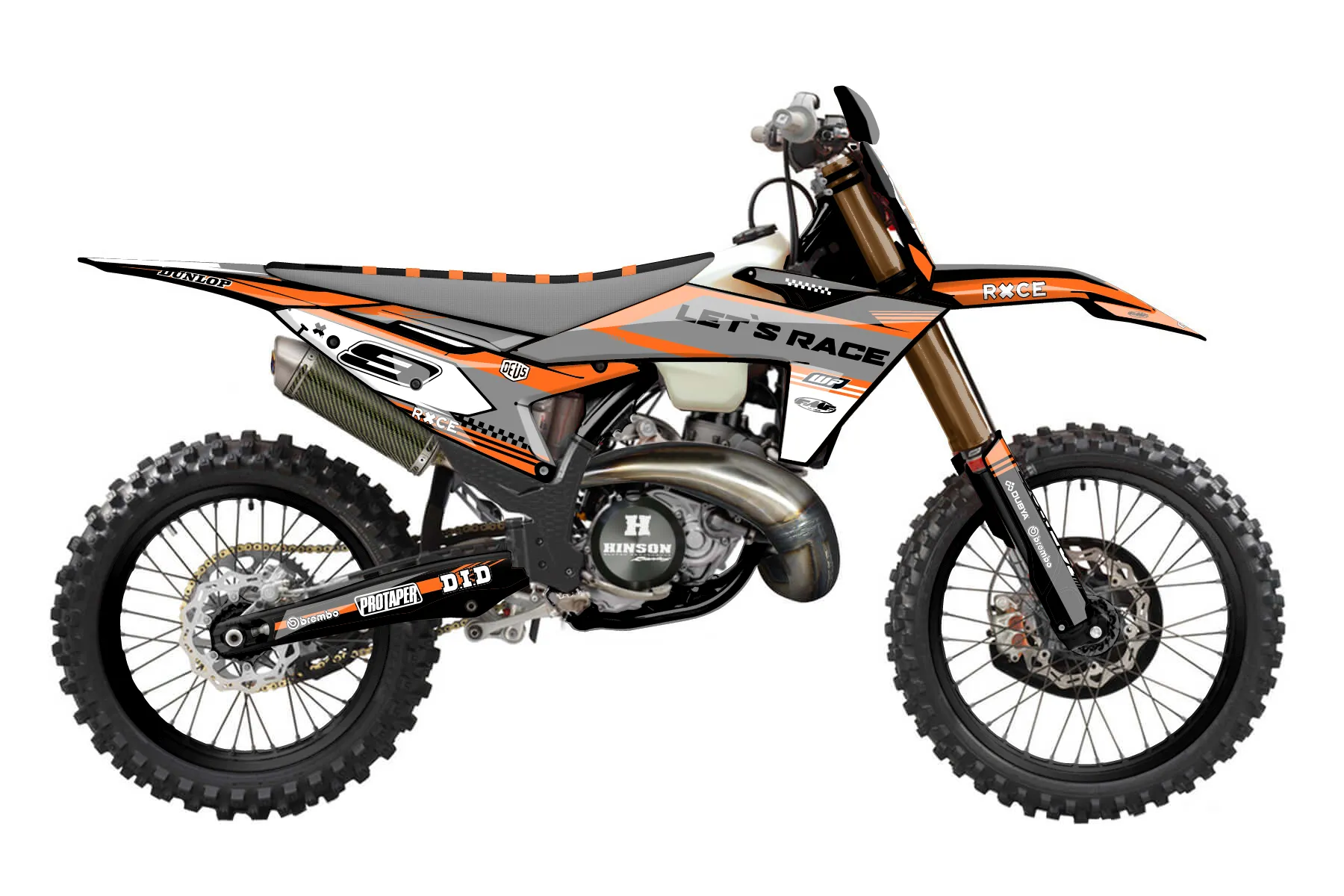 «dads 300 2nd» — готовый комплект графики серии Untucked для KTM Offroad Graphic Kit KTM XC 300 2023. В комплекте: графика на бак и боковые облицовки, крылья (переднее и заднее), передний щиток, номерные таблички, защита вилки. Материал: ПВХ-винил 80 мкр с холодной ламинацией 300 мкр, общая толщина 380 мкр; покрытие глянцевое или матовое на выбор. Устойчив к UV-излучению, воде, бензину и мойке высокого давления. Клей акриловый на сольвентной основе — постоянный, для гибких пластиков. На простых поверхностях монтируется без нагрева; для сложных изгибов рекомендуем фен. Этот пресет можно заказать как есть или взять за основу в конструкторе: поменять цвета, добавить стартовый номер и свой бренд. Производство — 3–5 рабочих дней, доставка по России СДЭКом или Почтой, по СНГ — курьерскими службами.