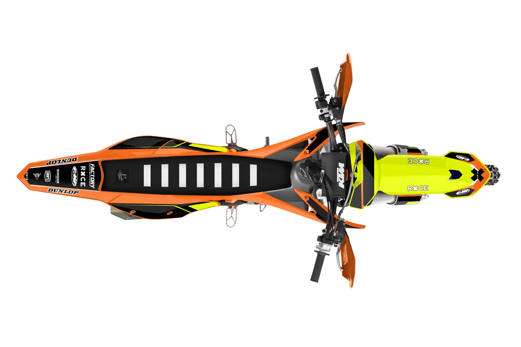 «Fluorescent» — готовый комплект графики серии Flow для KTM Offroad Graphic Kit KTM XC-F 250 2016. В комплекте: графика на бак и боковые облицовки, крылья (переднее и заднее), передний щиток, номерные таблички, защита вилки. Материал: ПВХ-винил 80 мкр с холодной ламинацией 300 мкр, общая толщина 380 мкр; покрытие глянцевое или матовое на выбор. Устойчив к UV-излучению, воде, бензину и мойке высокого давления. Клей акриловый на сольвентной основе — постоянный, для гибких пластиков. На простых поверхностях монтируется без нагрева; для сложных изгибов рекомендуем фен. Этот пресет можно заказать как есть или взять за основу в конструкторе: поменять цвета, добавить стартовый номер и свой бренд. Производство — 3–5 рабочих дней, доставка по России СДЭКом или Почтой, по СНГ — курьерскими службами.