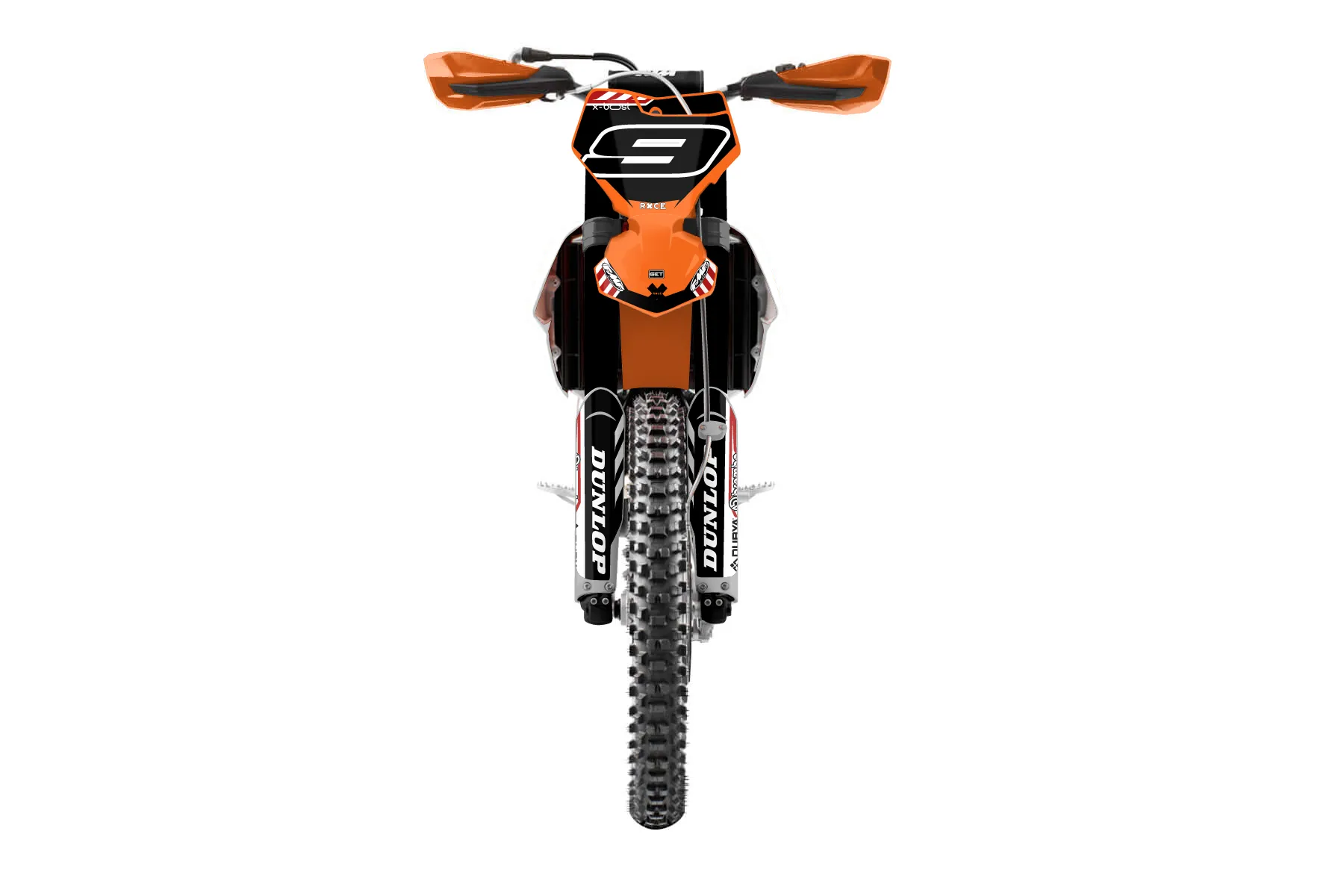 «Dude» — готовый комплект графики серии Maverick для KTM Offroad Graphic Kit KTM XC-F 250 2016. В комплекте: графика на бак и боковые облицовки, крылья (переднее и заднее), передний щиток, номерные таблички, защита вилки. Материал: ПВХ-винил 80 мкр с холодной ламинацией 300 мкр, общая толщина 380 мкр; покрытие глянцевое или матовое на выбор. Устойчив к UV-излучению, воде, бензину и мойке высокого давления. Клей акриловый на сольвентной основе — постоянный, для гибких пластиков. На простых поверхностях монтируется без нагрева; для сложных изгибов рекомендуем фен. Этот пресет можно заказать как есть или взять за основу в конструкторе: поменять цвета, добавить стартовый номер и свой бренд. Производство — 3–5 рабочих дней, доставка по России СДЭКом или Почтой, по СНГ — курьерскими службами.