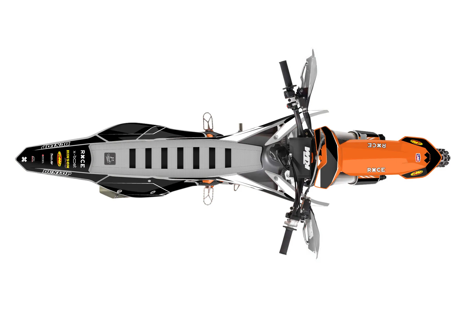 «Eleven» — готовый комплект графики серии Maverick для KTM Offroad Graphic Kit KTM XC-F 250 2016. В комплекте: графика на бак и боковые облицовки, крылья (переднее и заднее), передний щиток, номерные таблички, защита вилки. Материал: ПВХ-винил 80 мкр с холодной ламинацией 300 мкр, общая толщина 380 мкр; покрытие глянцевое или матовое на выбор. Устойчив к UV-излучению, воде, бензину и мойке высокого давления. Клей акриловый на сольвентной основе — постоянный, для гибких пластиков. На простых поверхностях монтируется без нагрева; для сложных изгибов рекомендуем фен. Этот пресет можно заказать как есть или взять за основу в конструкторе: поменять цвета, добавить стартовый номер и свой бренд. Производство — 3–5 рабочих дней, доставка по России СДЭКом или Почтой, по СНГ — курьерскими службами.