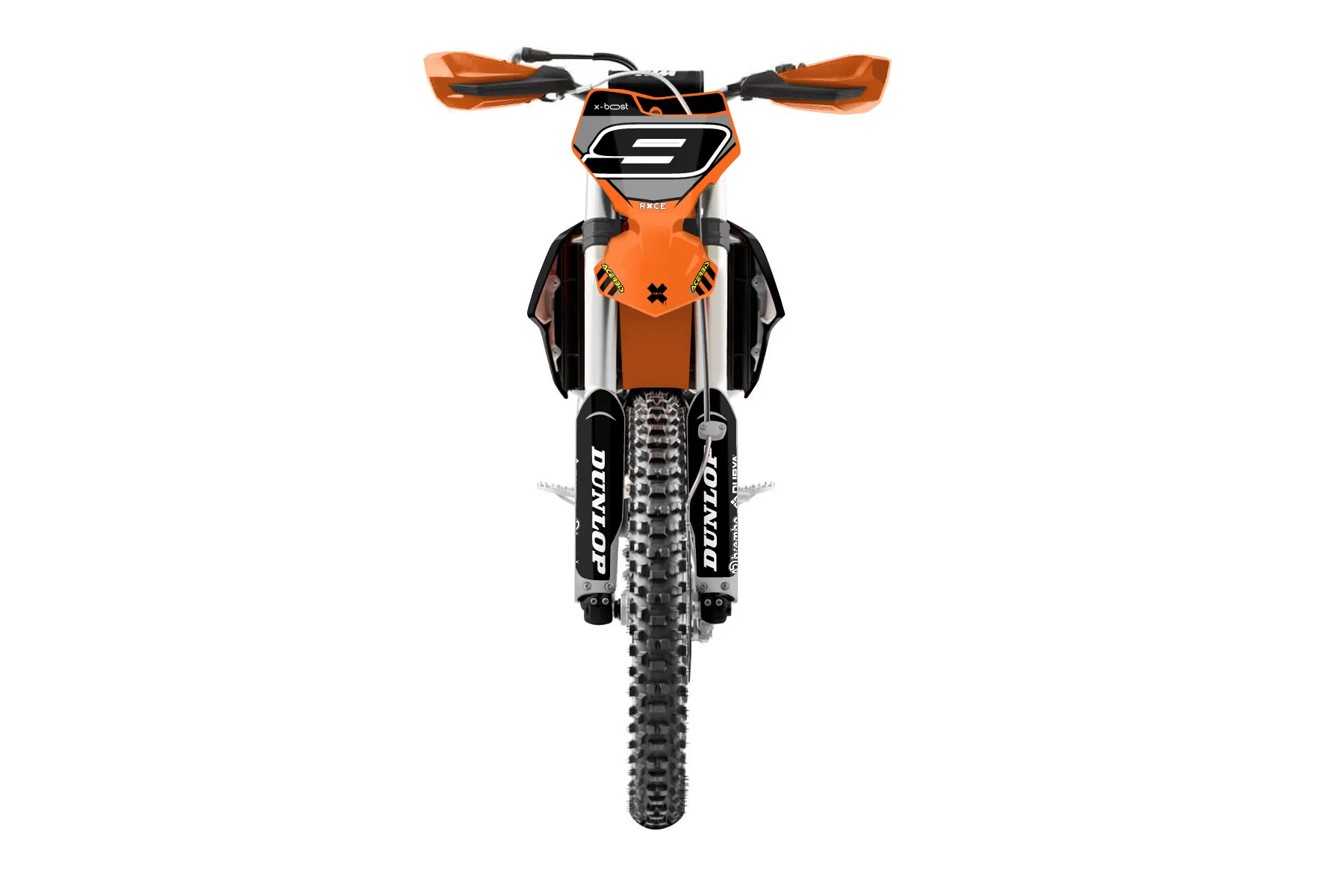 «Loose» — готовый комплект графики серии Maverick для KTM Offroad Graphic Kit KTM XC-F 250 2016. В комплекте: графика на бак и боковые облицовки, крылья (переднее и заднее), передний щиток, номерные таблички, защита вилки. Материал: ПВХ-винил 80 мкр с холодной ламинацией 300 мкр, общая толщина 380 мкр; покрытие глянцевое или матовое на выбор. Устойчив к UV-излучению, воде, бензину и мойке высокого давления. Клей акриловый на сольвентной основе — постоянный, для гибких пластиков. На простых поверхностях монтируется без нагрева; для сложных изгибов рекомендуем фен. Этот пресет можно заказать как есть или взять за основу в конструкторе: поменять цвета, добавить стартовый номер и свой бренд. Производство — 3–5 рабочих дней, доставка по России СДЭКом или Почтой, по СНГ — курьерскими службами.