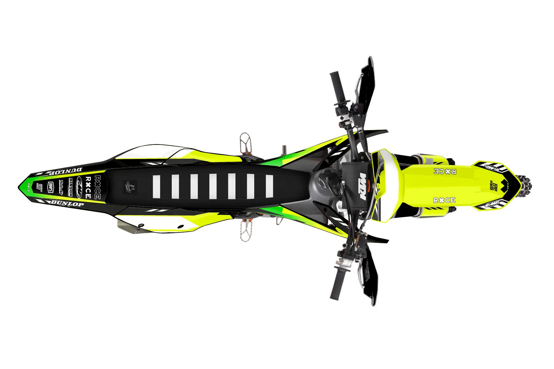 «Volt Neon» — готовый комплект графики серии Maverick для KTM Offroad Graphic Kit KTM XC-F 250 2016. В комплекте: графика на бак и боковые облицовки, крылья (переднее и заднее), передний щиток, номерные таблички, защита вилки. Материал: ПВХ-винил 80 мкр с холодной ламинацией 300 мкр, общая толщина 380 мкр; покрытие глянцевое или матовое на выбор. Устойчив к UV-излучению, воде, бензину и мойке высокого давления. Клей акриловый на сольвентной основе — постоянный, для гибких пластиков. На простых поверхностях монтируется без нагрева; для сложных изгибов рекомендуем фен. Этот пресет можно заказать как есть или взять за основу в конструкторе: поменять цвета, добавить стартовый номер и свой бренд. Производство — 3–5 рабочих дней, доставка по России СДЭКом или Почтой, по СНГ — курьерскими службами.