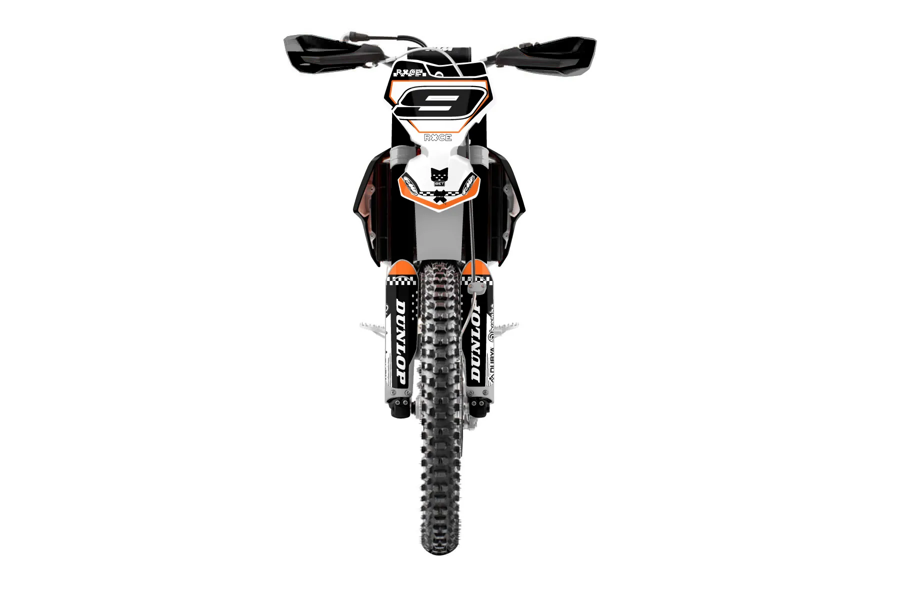 «Chef» — готовый комплект графики серии Staple для KTM Offroad Graphic Kit KTM XC-F 250 2016. В комплекте: графика на бак и боковые облицовки, крылья (переднее и заднее), передний щиток, номерные таблички, защита вилки. Материал: ПВХ-винил 80 мкр с холодной ламинацией 300 мкр, общая толщина 380 мкр; покрытие глянцевое или матовое на выбор. Устойчив к UV-излучению, воде, бензину и мойке высокого давления. Клей акриловый на сольвентной основе — постоянный, для гибких пластиков. На простых поверхностях монтируется без нагрева; для сложных изгибов рекомендуем фен. Этот пресет можно заказать как есть или взять за основу в конструкторе: поменять цвета, добавить стартовый номер и свой бренд. Производство — 3–5 рабочих дней, доставка по России СДЭКом или Почтой, по СНГ — курьерскими службами.