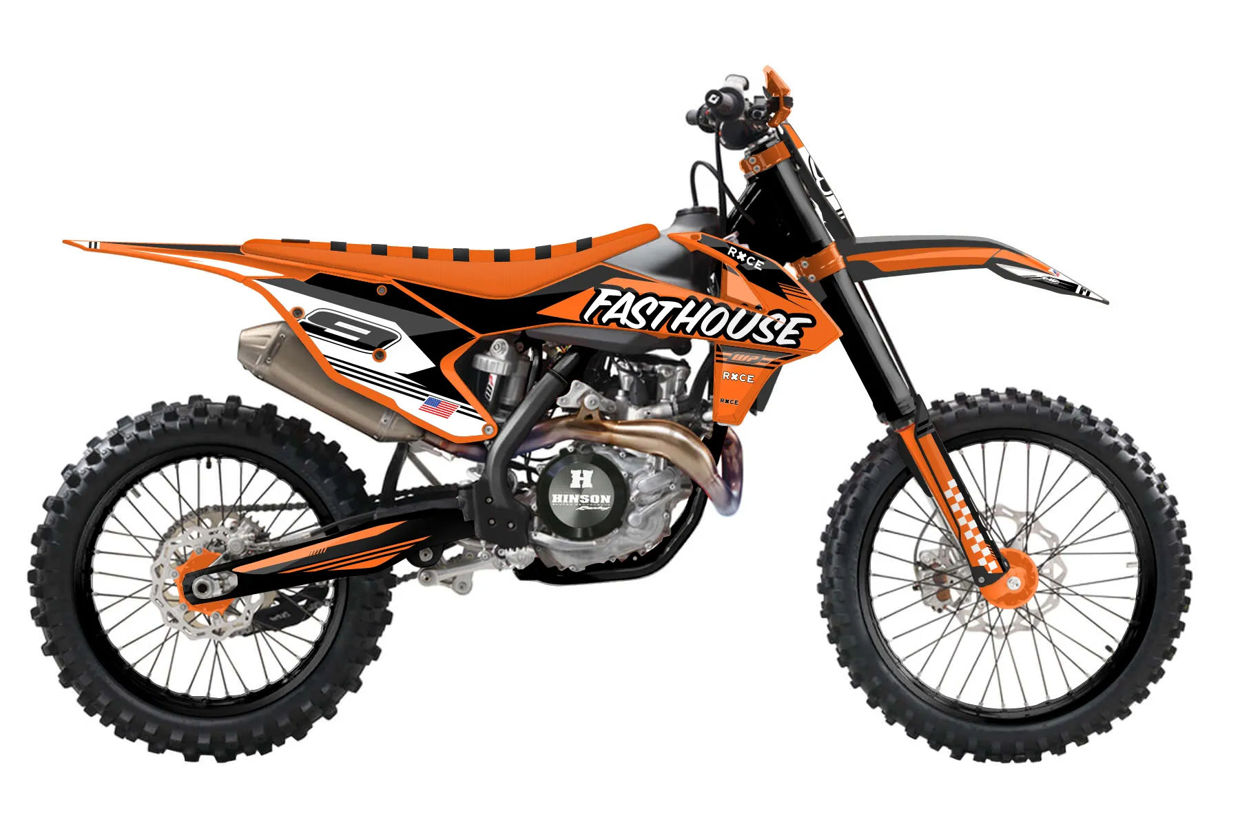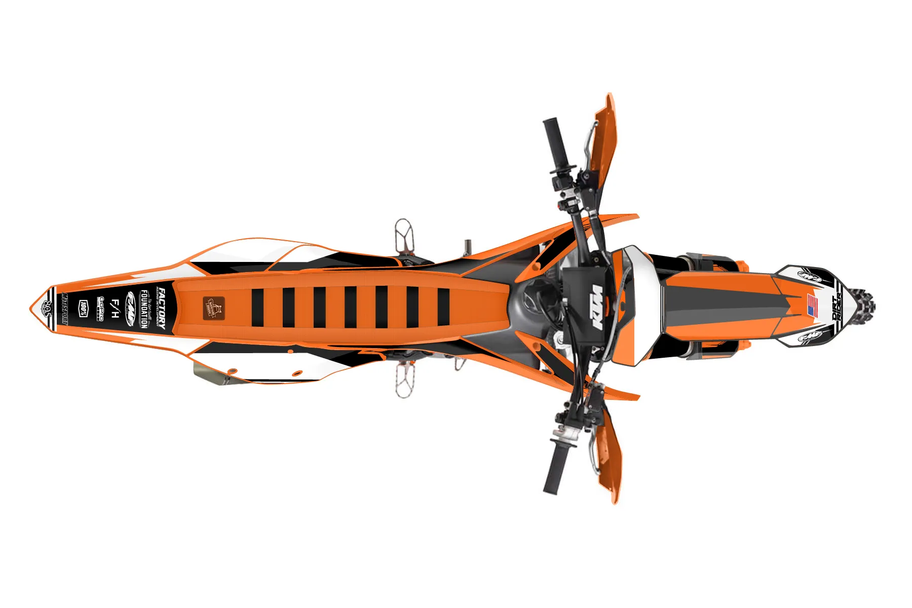 «Graphics-FH» — готовый комплект графики серии Untucked для KTM Offroad Graphic Kit KTM XC-F 250 2016. В комплекте: графика на бак и боковые облицовки, крылья (переднее и заднее), передний щиток, номерные таблички, защита вилки. Материал: ПВХ-винил 80 мкр с холодной ламинацией 300 мкр, общая толщина 380 мкр; покрытие глянцевое или матовое на выбор. Устойчив к UV-излучению, воде, бензину и мойке высокого давления. Клей акриловый на сольвентной основе — постоянный, для гибких пластиков. На простых поверхностях монтируется без нагрева; для сложных изгибов рекомендуем фен. Этот пресет можно заказать как есть или взять за основу в конструкторе: поменять цвета, добавить стартовый номер и свой бренд. Производство — 3–5 рабочих дней, доставка по России СДЭКом или Почтой, по СНГ — курьерскими службами.