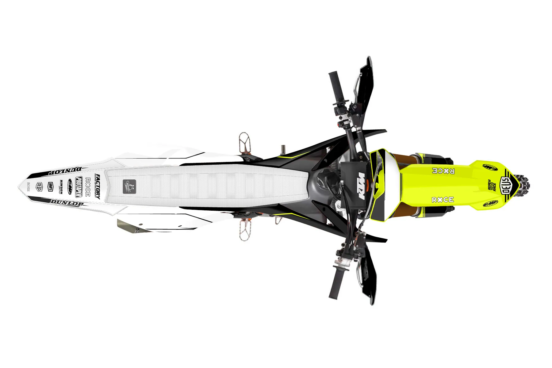 «Ride Neon» — готовый комплект графики серии Untucked для KTM Offroad Graphic Kit KTM XC-F 250 2016. В комплекте: графика на бак и боковые облицовки, крылья (переднее и заднее), передний щиток, номерные таблички, защита вилки. Материал: ПВХ-винил 80 мкр с холодной ламинацией 300 мкр, общая толщина 380 мкр; покрытие глянцевое или матовое на выбор. Устойчив к UV-излучению, воде, бензину и мойке высокого давления. Клей акриловый на сольвентной основе — постоянный, для гибких пластиков. На простых поверхностях монтируется без нагрева; для сложных изгибов рекомендуем фен. Этот пресет можно заказать как есть или взять за основу в конструкторе: поменять цвета, добавить стартовый номер и свой бренд. Производство — 3–5 рабочих дней, доставка по России СДЭКом или Почтой, по СНГ — курьерскими службами.