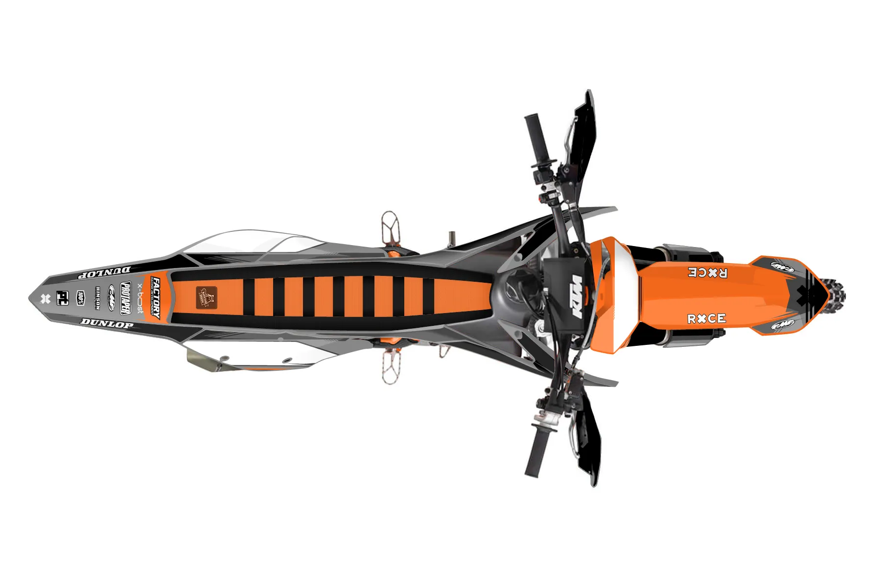 «Satisfied» — готовый комплект графики серии Untucked для KTM Offroad Graphic Kit KTM XC-F 250 2016. В комплекте: графика на бак и боковые облицовки, крылья (переднее и заднее), передний щиток, номерные таблички, защита вилки. Материал: ПВХ-винил 80 мкр с холодной ламинацией 300 мкр, общая толщина 380 мкр; покрытие глянцевое или матовое на выбор. Устойчив к UV-излучению, воде, бензину и мойке высокого давления. Клей акриловый на сольвентной основе — постоянный, для гибких пластиков. На простых поверхностях монтируется без нагрева; для сложных изгибов рекомендуем фен. Этот пресет можно заказать как есть или взять за основу в конструкторе: поменять цвета, добавить стартовый номер и свой бренд. Производство — 3–5 рабочих дней, доставка по России СДЭКом или Почтой, по СНГ — курьерскими службами.