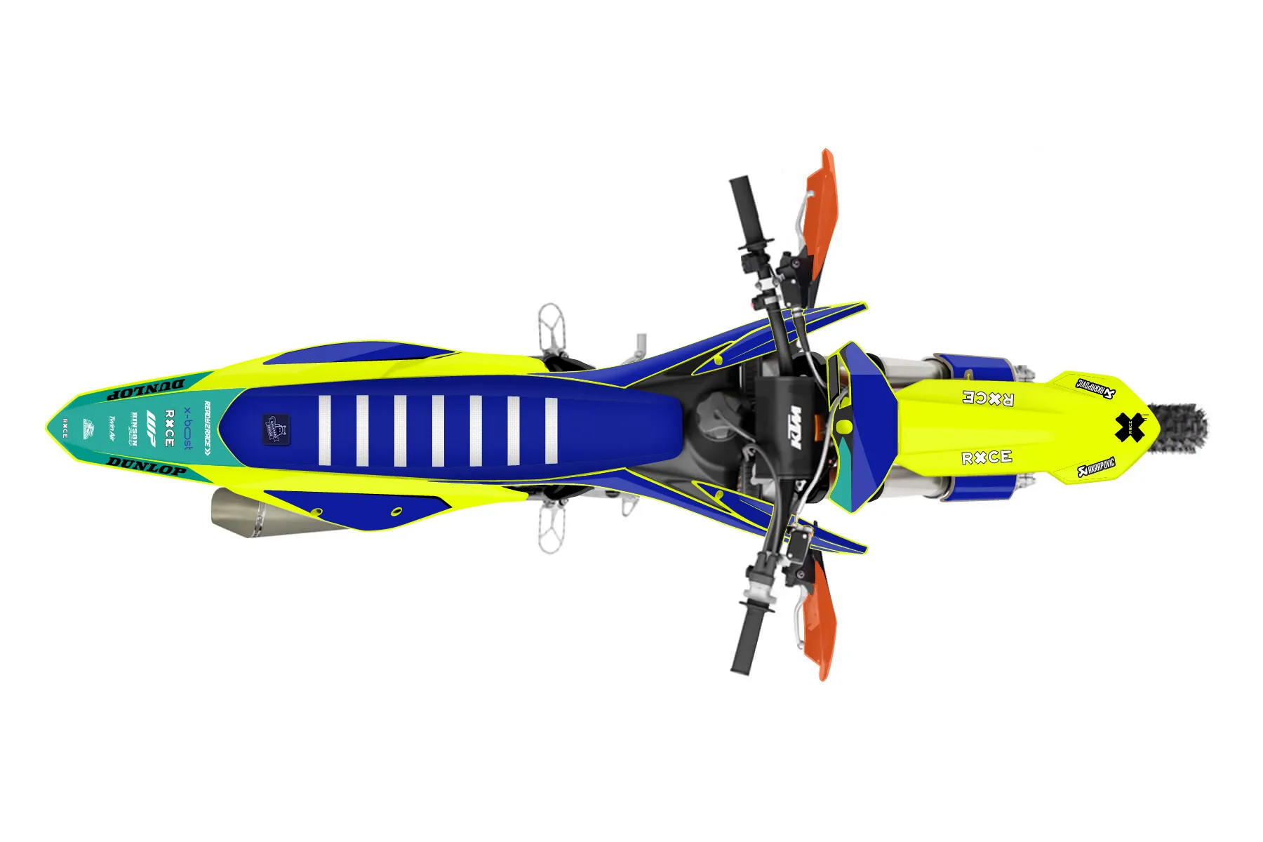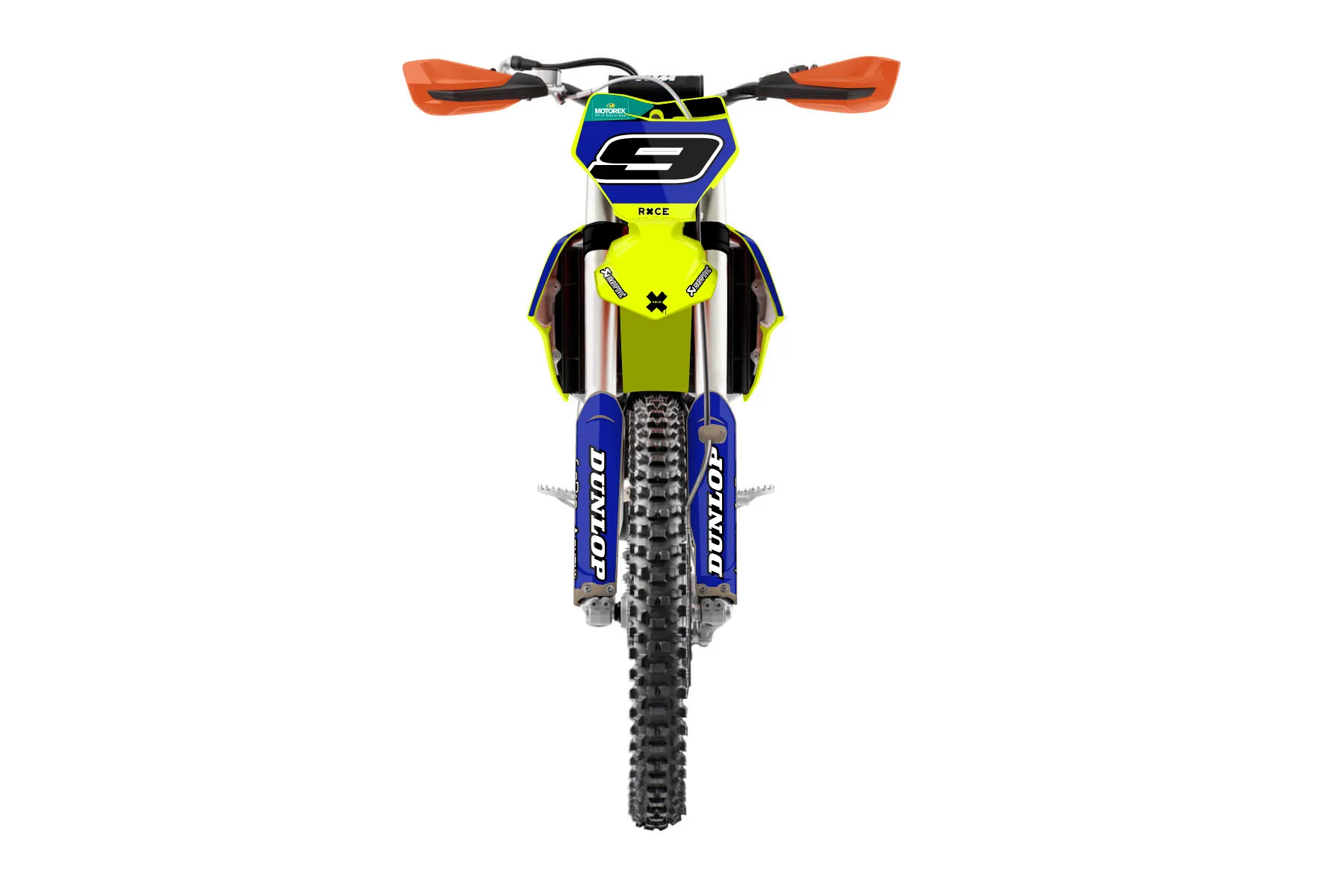 «Brilliant Neon» — готовый комплект графики серии Flow для KTM Offroad Graphic Kit KTM XC-F 250 2019. В комплекте: графика на бак и боковые облицовки, крылья (переднее и заднее), передний щиток, номерные таблички, защита вилки. Материал: ПВХ-винил 80 мкр с холодной ламинацией 300 мкр, общая толщина 380 мкр; покрытие глянцевое или матовое на выбор. Устойчив к UV-излучению, воде, бензину и мойке высокого давления. Клей акриловый на сольвентной основе — постоянный, для гибких пластиков. На простых поверхностях монтируется без нагрева; для сложных изгибов рекомендуем фен. Этот пресет можно заказать как есть или взять за основу в конструкторе: поменять цвета, добавить стартовый номер и свой бренд. Производство — 3–5 рабочих дней, доставка по России СДЭКом или Почтой, по СНГ — курьерскими службами.