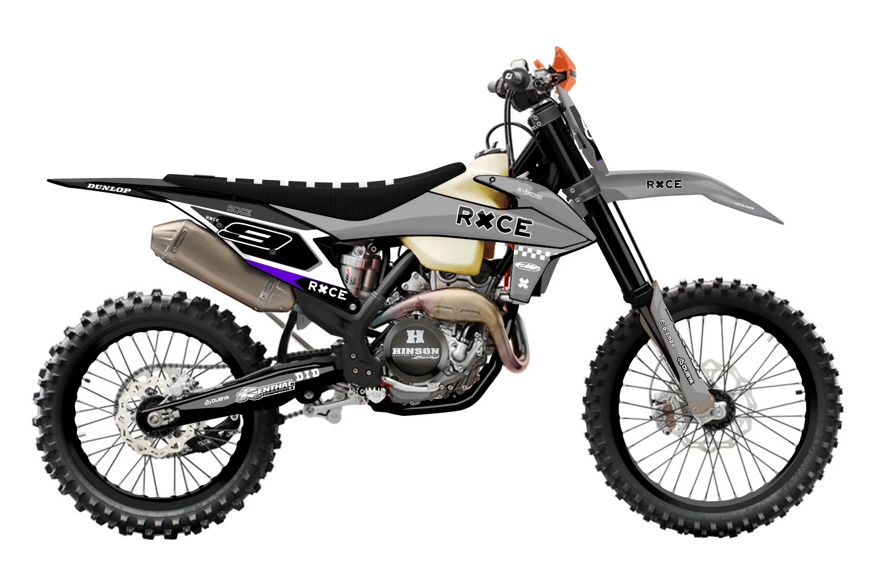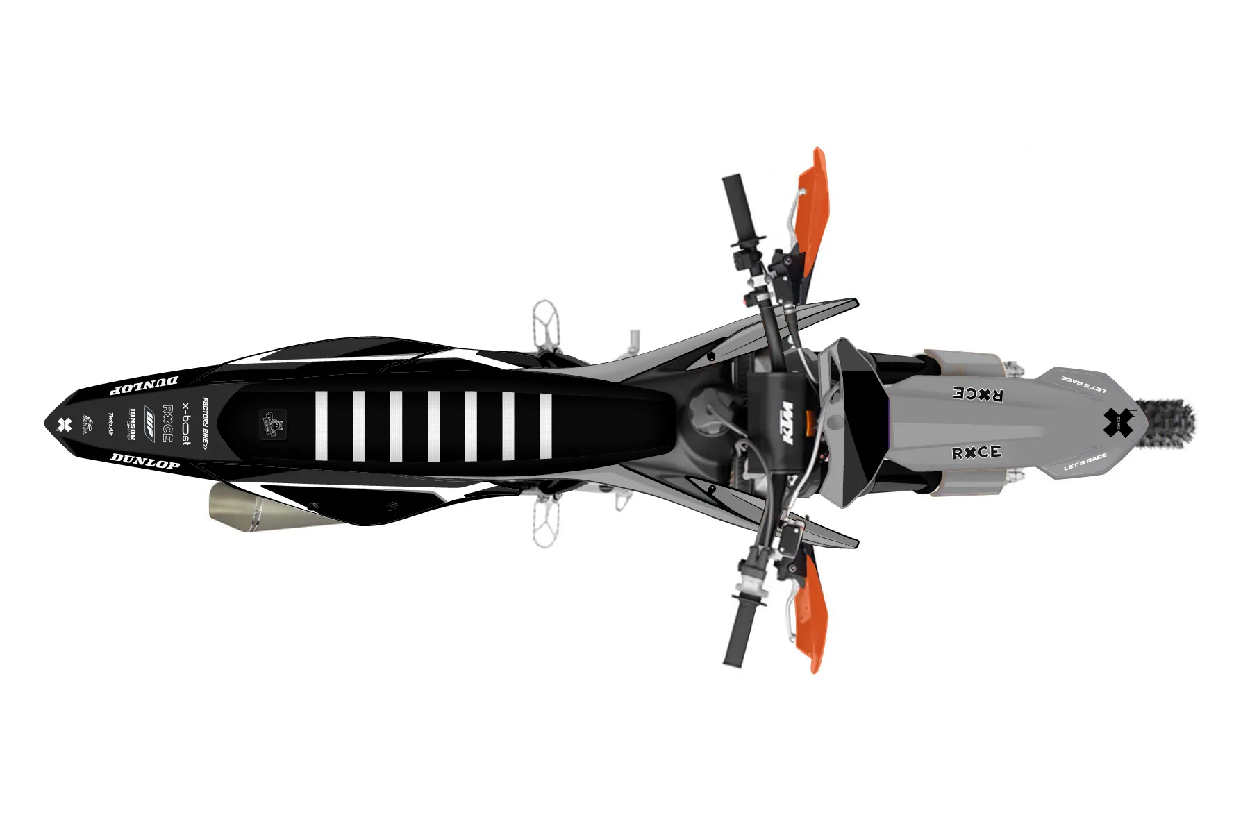 «Cyber Pirate» — готовый комплект графики серии Flow для KTM Offroad Graphic Kit KTM XC-F 250 2019. В комплекте: графика на бак и боковые облицовки, крылья (переднее и заднее), передний щиток, номерные таблички, защита вилки. Материал: ПВХ-винил 80 мкр с холодной ламинацией 300 мкр, общая толщина 380 мкр; покрытие глянцевое или матовое на выбор. Устойчив к UV-излучению, воде, бензину и мойке высокого давления. Клей акриловый на сольвентной основе — постоянный, для гибких пластиков. На простых поверхностях монтируется без нагрева; для сложных изгибов рекомендуем фен. Этот пресет можно заказать как есть или взять за основу в конструкторе: поменять цвета, добавить стартовый номер и свой бренд. Производство — 3–5 рабочих дней, доставка по России СДЭКом или Почтой, по СНГ — курьерскими службами.