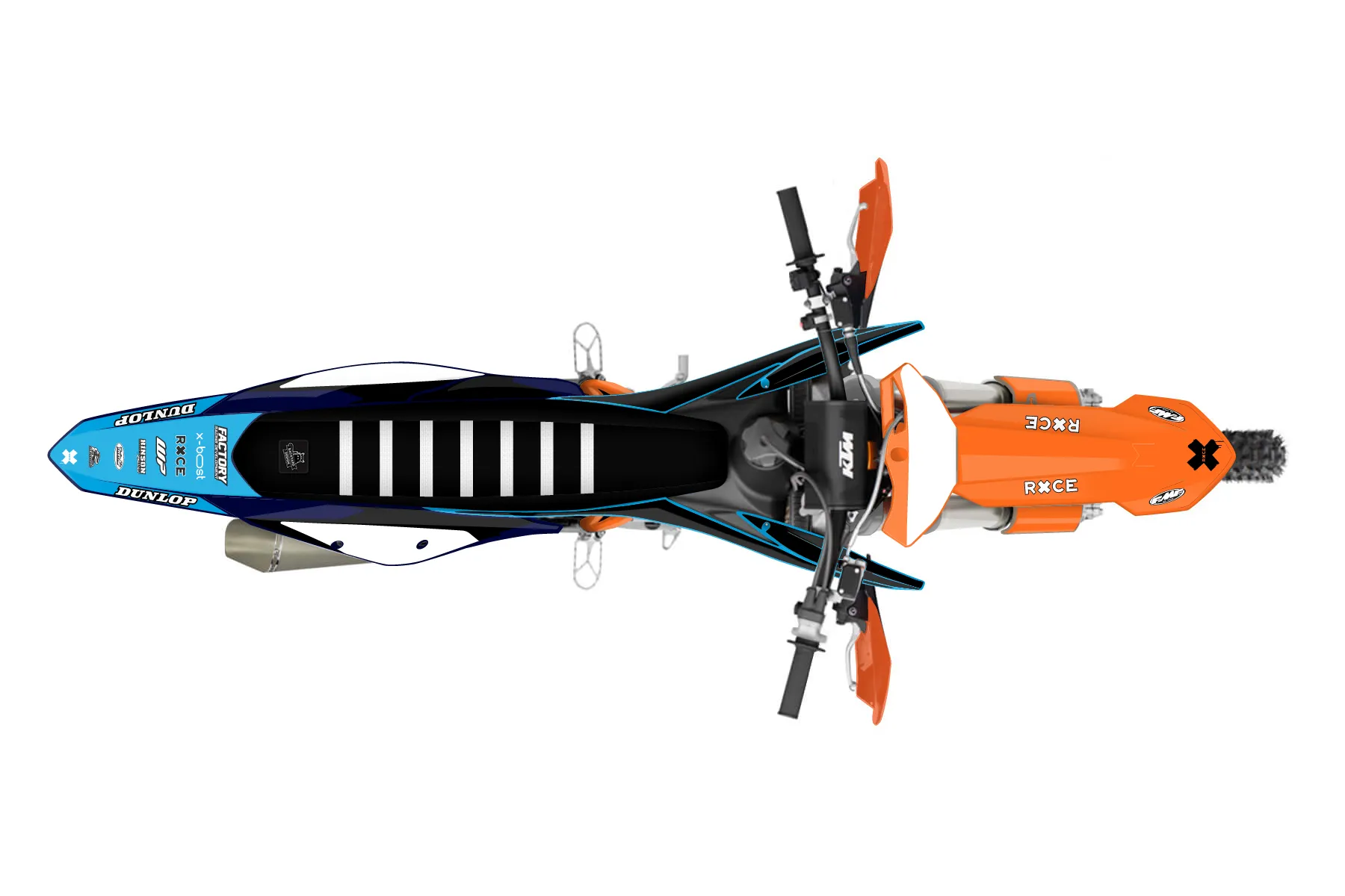 «Meta» — готовый комплект графики серии Flow для KTM Offroad Graphic Kit KTM XC-F 250 2019. В комплекте: графика на бак и боковые облицовки, крылья (переднее и заднее), передний щиток, номерные таблички, защита вилки. Материал: ПВХ-винил 80 мкр с холодной ламинацией 300 мкр, общая толщина 380 мкр; покрытие глянцевое или матовое на выбор. Устойчив к UV-излучению, воде, бензину и мойке высокого давления. Клей акриловый на сольвентной основе — постоянный, для гибких пластиков. На простых поверхностях монтируется без нагрева; для сложных изгибов рекомендуем фен. Этот пресет можно заказать как есть или взять за основу в конструкторе: поменять цвета, добавить стартовый номер и свой бренд. Производство — 3–5 рабочих дней, доставка по России СДЭКом или Почтой, по СНГ — курьерскими службами.