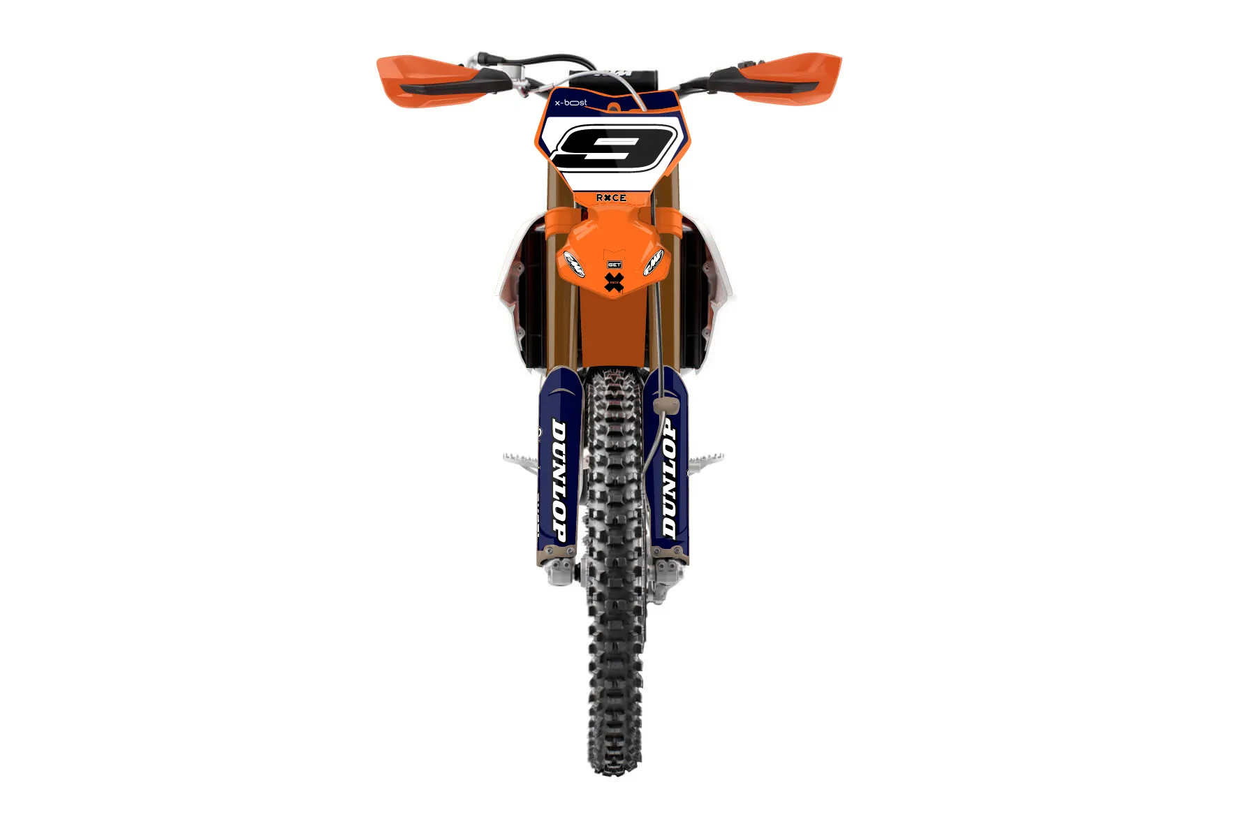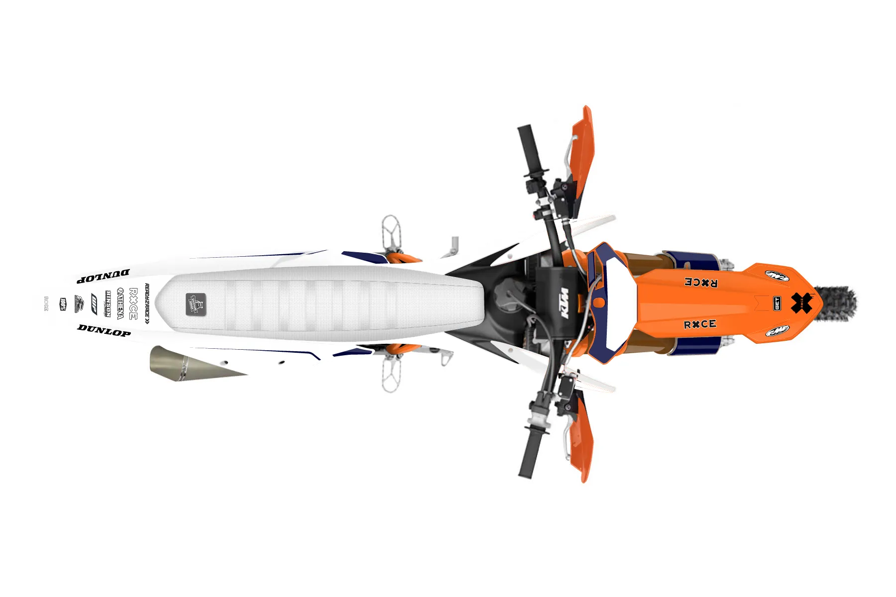 «Moto» — готовый комплект графики серии Flow для KTM Offroad Graphic Kit KTM XC-F 250 2019. В комплекте: графика на бак и боковые облицовки, крылья (переднее и заднее), передний щиток, номерные таблички, защита вилки. Материал: ПВХ-винил 80 мкр с холодной ламинацией 300 мкр, общая толщина 380 мкр; покрытие глянцевое или матовое на выбор. Устойчив к UV-излучению, воде, бензину и мойке высокого давления. Клей акриловый на сольвентной основе — постоянный, для гибких пластиков. На простых поверхностях монтируется без нагрева; для сложных изгибов рекомендуем фен. Этот пресет можно заказать как есть или взять за основу в конструкторе: поменять цвета, добавить стартовый номер и свой бренд. Производство — 3–5 рабочих дней, доставка по России СДЭКом или Почтой, по СНГ — курьерскими службами.