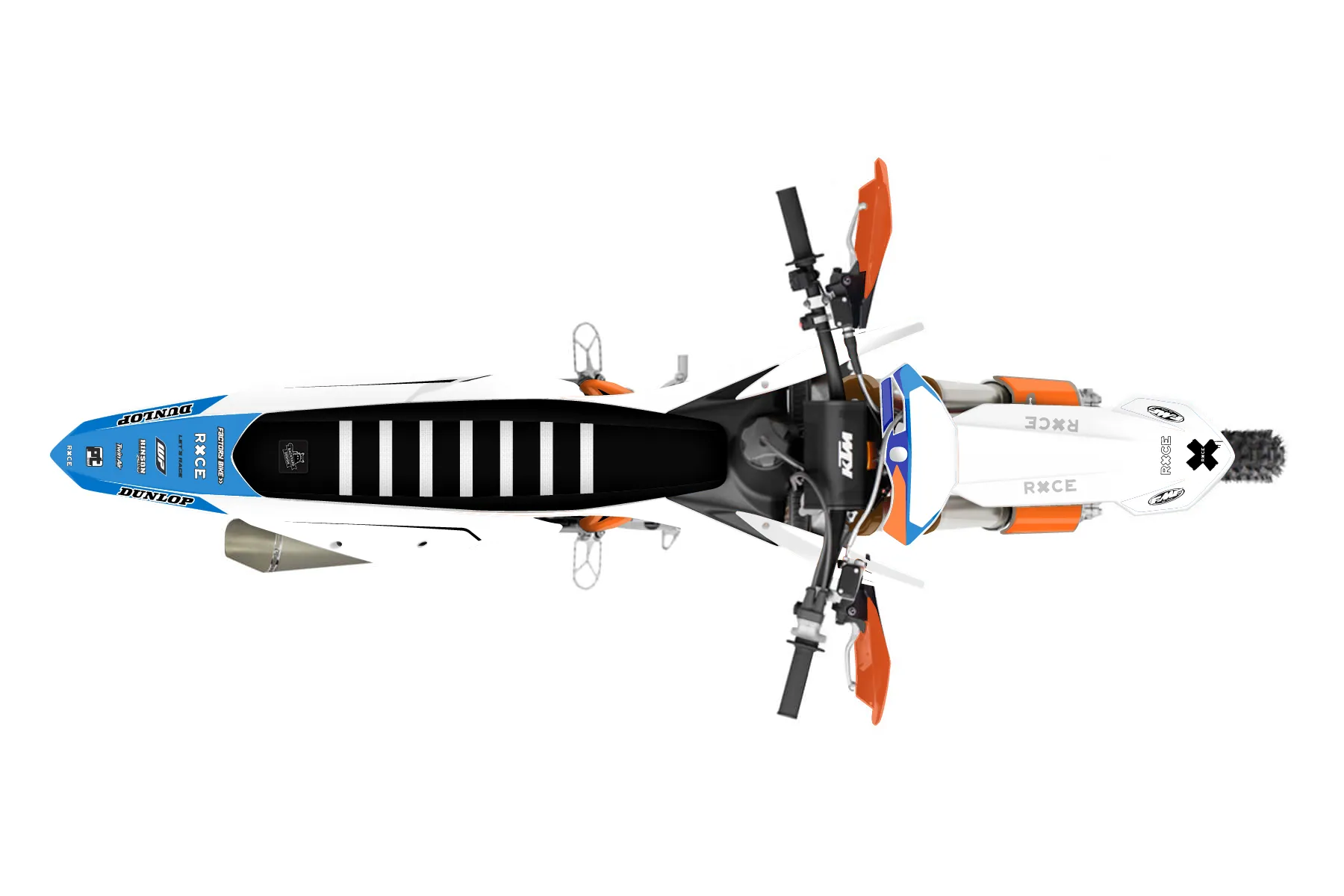 «Oldschool» — готовый комплект графики серии Flow для KTM Offroad Graphic Kit KTM XC-F 250 2019. В комплекте: графика на бак и боковые облицовки, крылья (переднее и заднее), передний щиток, номерные таблички, защита вилки. Материал: ПВХ-винил 80 мкр с холодной ламинацией 300 мкр, общая толщина 380 мкр; покрытие глянцевое или матовое на выбор. Устойчив к UV-излучению, воде, бензину и мойке высокого давления. Клей акриловый на сольвентной основе — постоянный, для гибких пластиков. На простых поверхностях монтируется без нагрева; для сложных изгибов рекомендуем фен. Этот пресет можно заказать как есть или взять за основу в конструкторе: поменять цвета, добавить стартовый номер и свой бренд. Производство — 3–5 рабочих дней, доставка по России СДЭКом или Почтой, по СНГ — курьерскими службами.