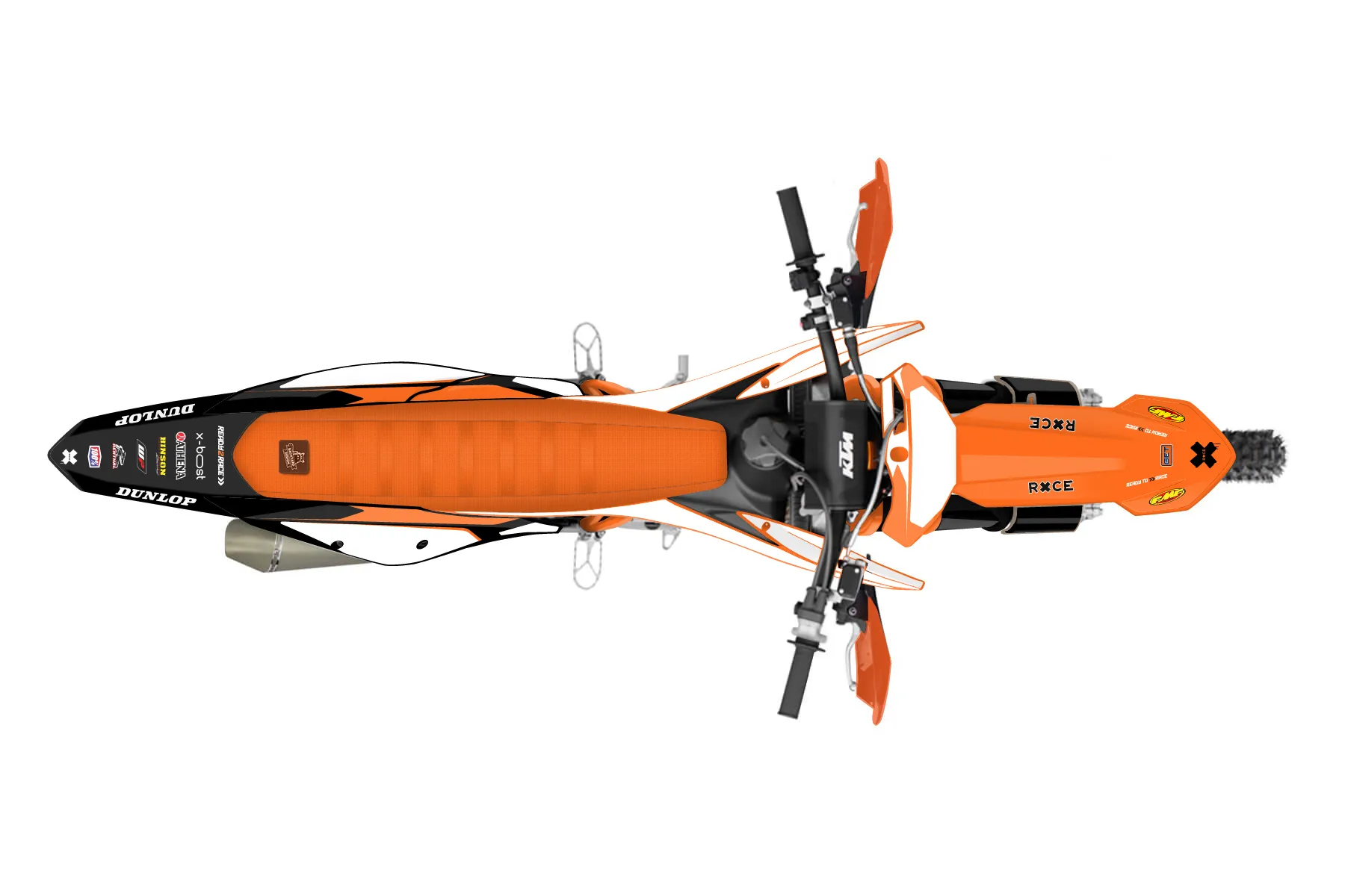 «Predicted» — готовый комплект графики серии Flow для KTM Offroad Graphic Kit KTM XC-F 250 2019. В комплекте: графика на бак и боковые облицовки, крылья (переднее и заднее), передний щиток, номерные таблички, защита вилки. Материал: ПВХ-винил 80 мкр с холодной ламинацией 300 мкр, общая толщина 380 мкр; покрытие глянцевое или матовое на выбор. Устойчив к UV-излучению, воде, бензину и мойке высокого давления. Клей акриловый на сольвентной основе — постоянный, для гибких пластиков. На простых поверхностях монтируется без нагрева; для сложных изгибов рекомендуем фен. Этот пресет можно заказать как есть или взять за основу в конструкторе: поменять цвета, добавить стартовый номер и свой бренд. Производство — 3–5 рабочих дней, доставка по России СДЭКом или Почтой, по СНГ — курьерскими службами.