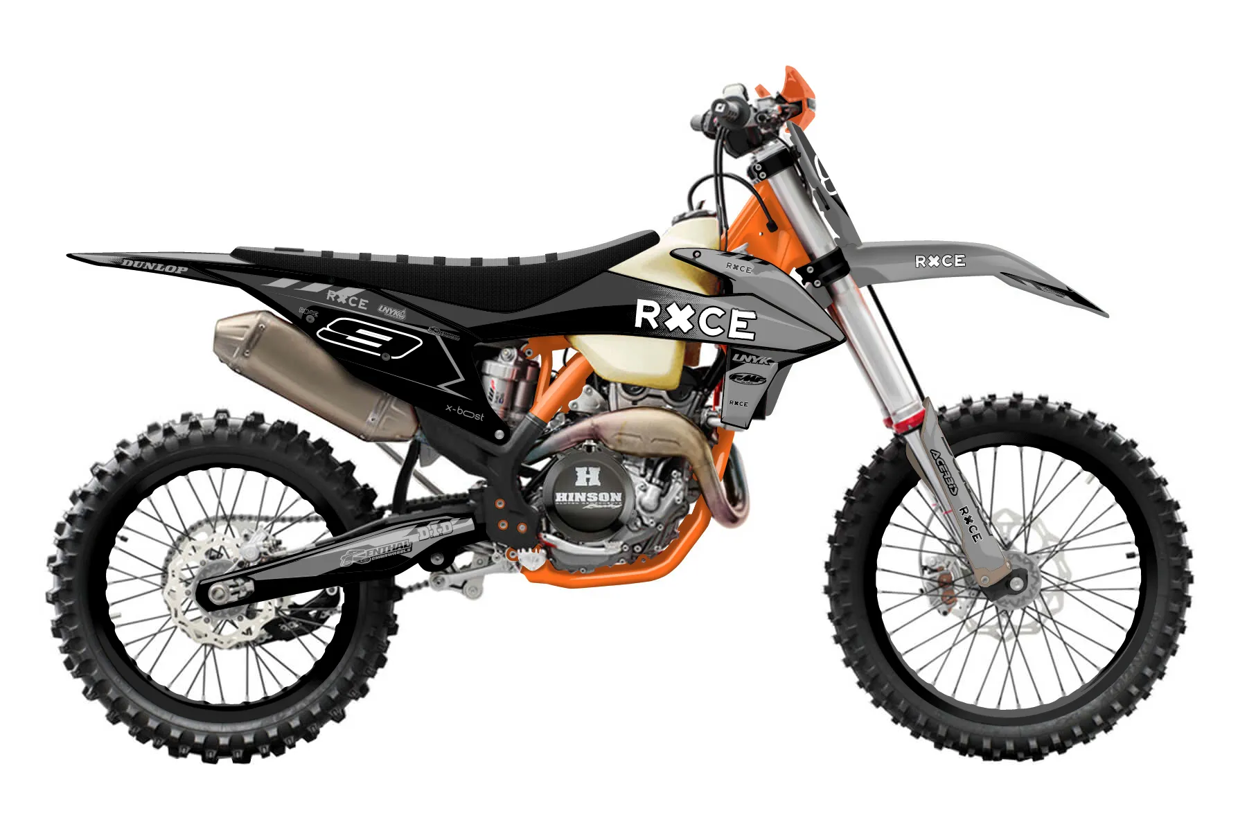«Grip» — готовый комплект графики серии Maverick для KTM Offroad Graphic Kit KTM XC-F 250 2019. В комплекте: графика на бак и боковые облицовки, крылья (переднее и заднее), передний щиток, номерные таблички, защита вилки. Материал: ПВХ-винил 80 мкр с холодной ламинацией 300 мкр, общая толщина 380 мкр; покрытие глянцевое или матовое на выбор. Устойчив к UV-излучению, воде, бензину и мойке высокого давления. Клей акриловый на сольвентной основе — постоянный, для гибких пластиков. На простых поверхностях монтируется без нагрева; для сложных изгибов рекомендуем фен. Этот пресет можно заказать как есть или взять за основу в конструкторе: поменять цвета, добавить стартовый номер и свой бренд. Производство — 3–5 рабочих дней, доставка по России СДЭКом или Почтой, по СНГ — курьерскими службами.