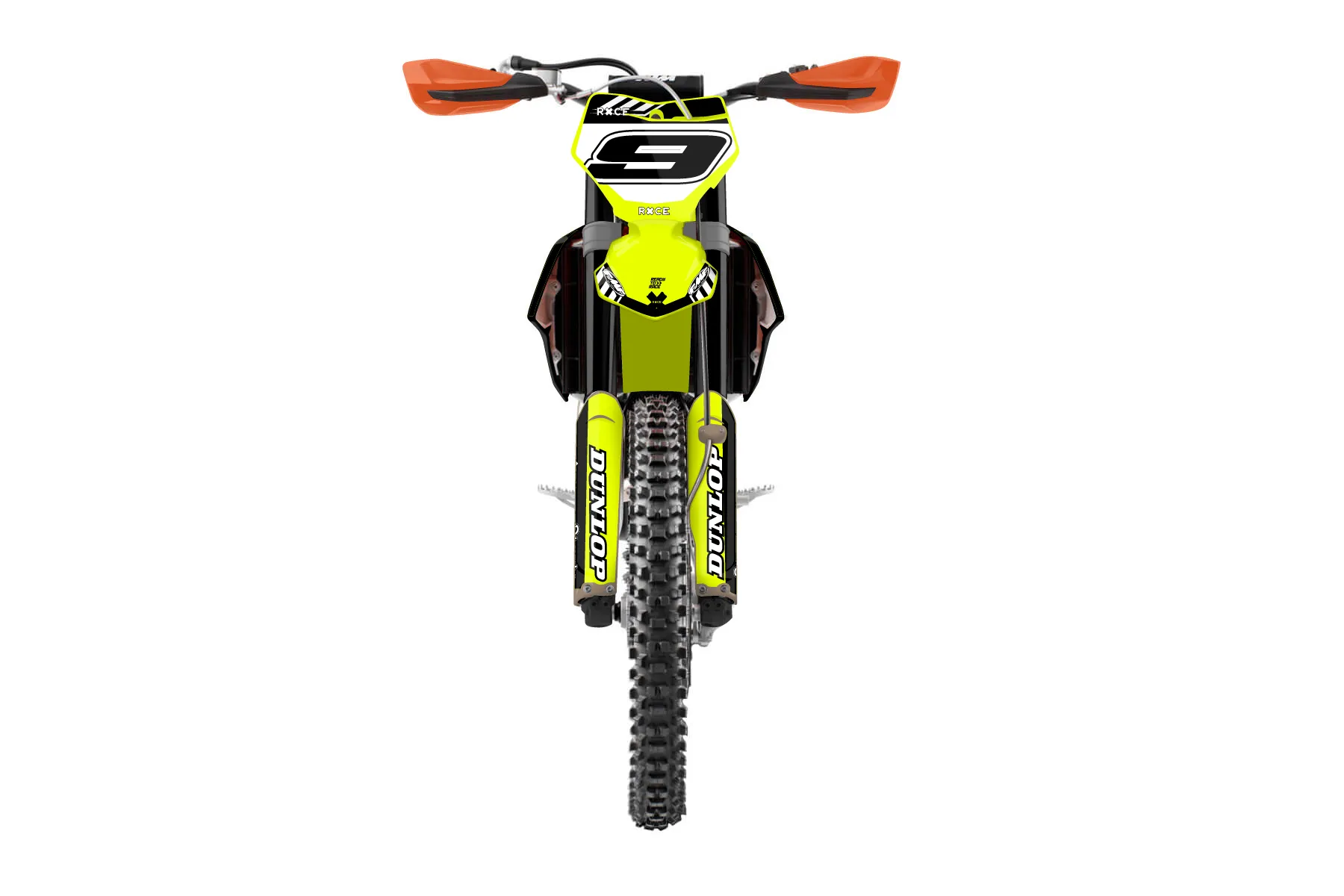 «Volt Neon» — готовый комплект графики серии Maverick для KTM Offroad Graphic Kit KTM XC-F 250 2019. В комплекте: графика на бак и боковые облицовки, крылья (переднее и заднее), передний щиток, номерные таблички, защита вилки. Материал: ПВХ-винил 80 мкр с холодной ламинацией 300 мкр, общая толщина 380 мкр; покрытие глянцевое или матовое на выбор. Устойчив к UV-излучению, воде, бензину и мойке высокого давления. Клей акриловый на сольвентной основе — постоянный, для гибких пластиков. На простых поверхностях монтируется без нагрева; для сложных изгибов рекомендуем фен. Этот пресет можно заказать как есть или взять за основу в конструкторе: поменять цвета, добавить стартовый номер и свой бренд. Производство — 3–5 рабочих дней, доставка по России СДЭКом или Почтой, по СНГ — курьерскими службами.