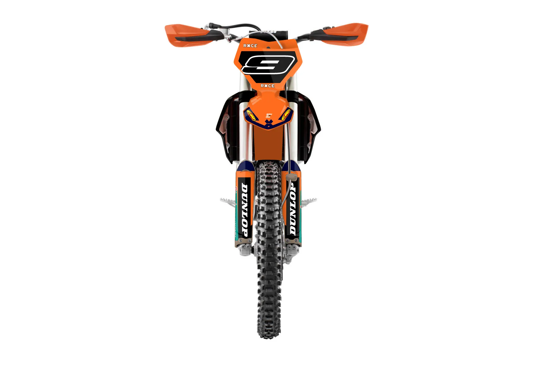 «Scoop» — готовый комплект графики серии Staple для KTM Offroad Graphic Kit KTM XC-F 250 2019. В комплекте: графика на бак и боковые облицовки, крылья (переднее и заднее), передний щиток, номерные таблички, защита вилки. Материал: ПВХ-винил 80 мкр с холодной ламинацией 300 мкр, общая толщина 380 мкр; покрытие глянцевое или матовое на выбор. Устойчив к UV-излучению, воде, бензину и мойке высокого давления. Клей акриловый на сольвентной основе — постоянный, для гибких пластиков. На простых поверхностях монтируется без нагрева; для сложных изгибов рекомендуем фен. Этот пресет можно заказать как есть или взять за основу в конструкторе: поменять цвета, добавить стартовый номер и свой бренд. Производство — 3–5 рабочих дней, доставка по России СДЭКом или Почтой, по СНГ — курьерскими службами.