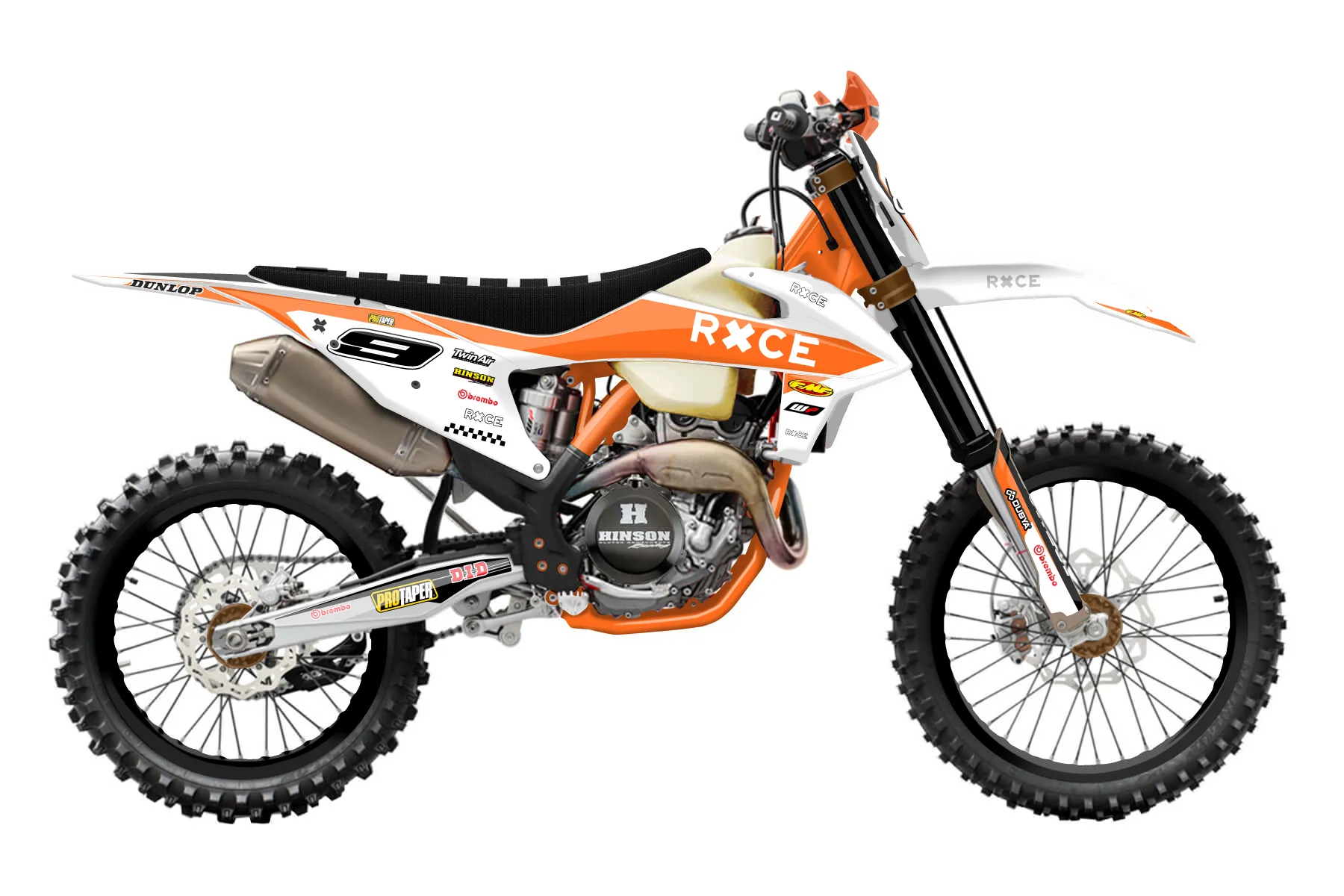 «Tilled» — готовый комплект графики серии Staple для KTM Offroad Graphic Kit KTM XC-F 250 2019. В комплекте: графика на бак и боковые облицовки, крылья (переднее и заднее), передний щиток, номерные таблички, защита вилки. Материал: ПВХ-винил 80 мкр с холодной ламинацией 300 мкр, общая толщина 380 мкр; покрытие глянцевое или матовое на выбор. Устойчив к UV-излучению, воде, бензину и мойке высокого давления. Клей акриловый на сольвентной основе — постоянный, для гибких пластиков. На простых поверхностях монтируется без нагрева; для сложных изгибов рекомендуем фен. Этот пресет можно заказать как есть или взять за основу в конструкторе: поменять цвета, добавить стартовый номер и свой бренд. Производство — 3–5 рабочих дней, доставка по России СДЭКом или Почтой, по СНГ — курьерскими службами.