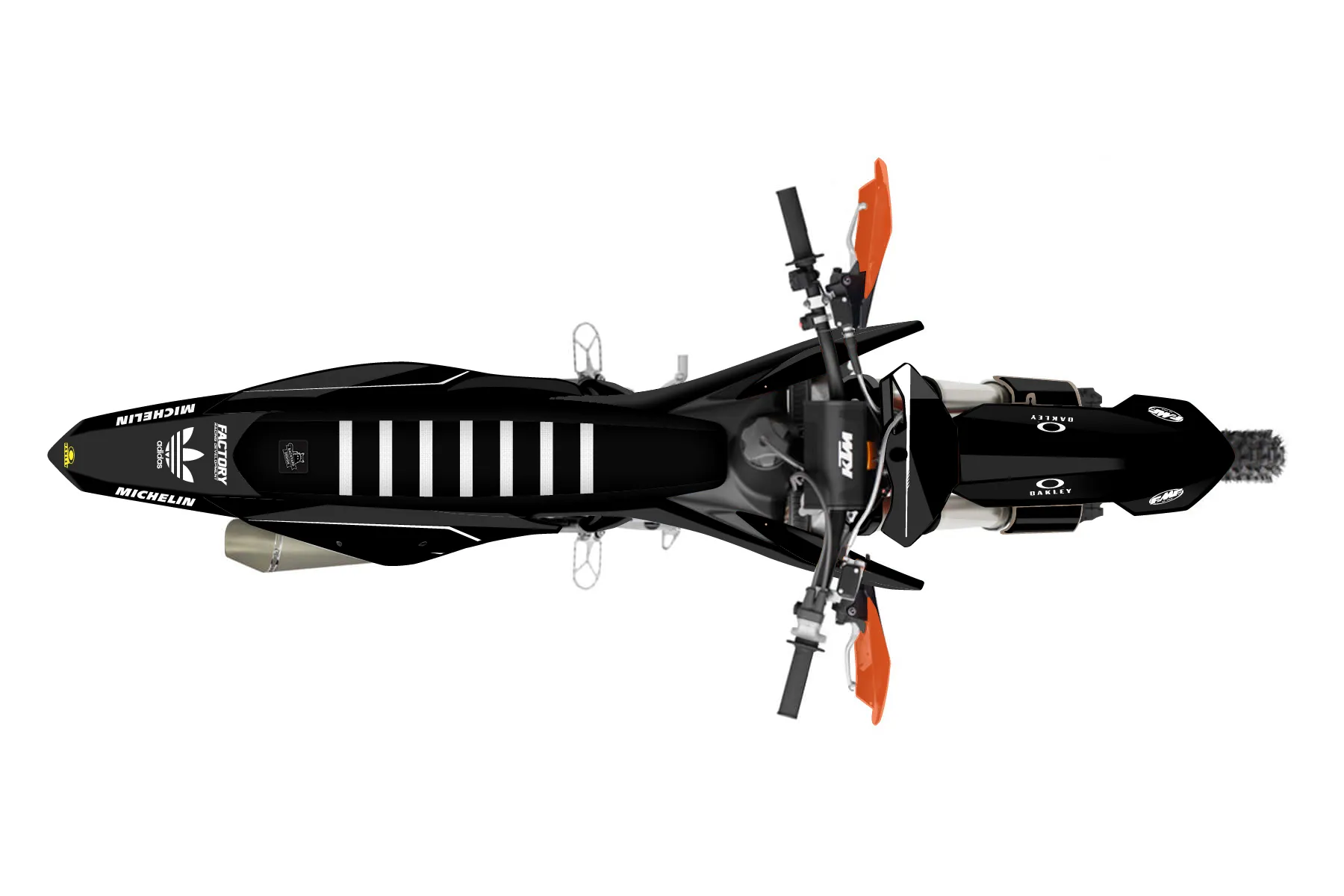«CustomDesign» — готовый комплект графики серии Untucked для KTM Offroad Graphic Kit KTM XC-F 250 2019. В комплекте: графика на бак и боковые облицовки, крылья (переднее и заднее), передний щиток, номерные таблички, защита вилки. Материал: ПВХ-винил 80 мкр с холодной ламинацией 300 мкр, общая толщина 380 мкр; покрытие глянцевое или матовое на выбор. Устойчив к UV-излучению, воде, бензину и мойке высокого давления. Клей акриловый на сольвентной основе — постоянный, для гибких пластиков. На простых поверхностях монтируется без нагрева; для сложных изгибов рекомендуем фен. Этот пресет можно заказать как есть или взять за основу в конструкторе: поменять цвета, добавить стартовый номер и свой бренд. Производство — 3–5 рабочих дней, доставка по России СДЭКом или Почтой, по СНГ — курьерскими службами.