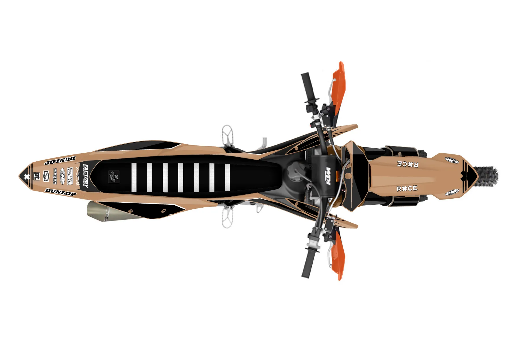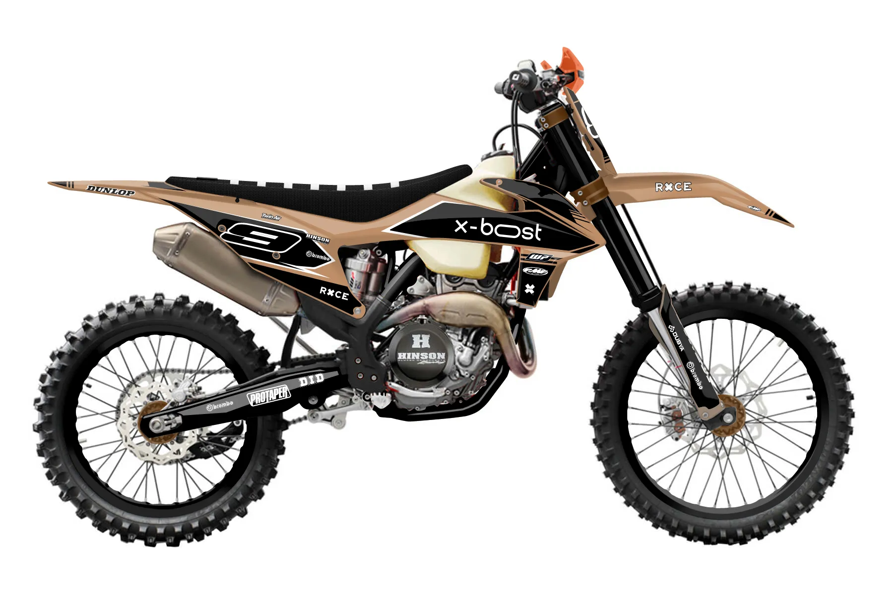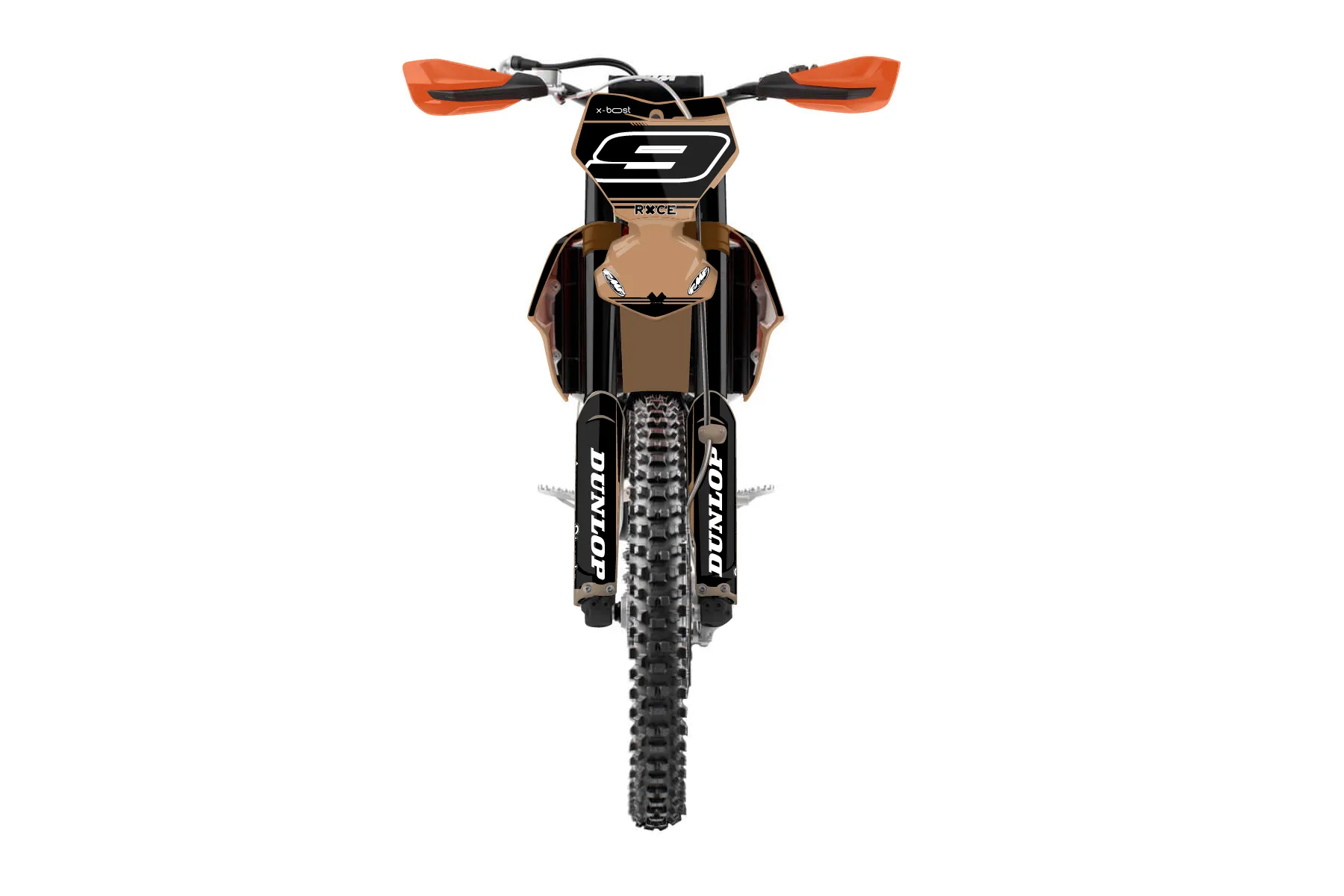 «Entire» — готовый комплект графики серии Untucked для KTM Offroad Graphic Kit KTM XC-F 250 2019. В комплекте: графика на бак и боковые облицовки, крылья (переднее и заднее), передний щиток, номерные таблички, защита вилки. Материал: ПВХ-винил 80 мкр с холодной ламинацией 300 мкр, общая толщина 380 мкр; покрытие глянцевое или матовое на выбор. Устойчив к UV-излучению, воде, бензину и мойке высокого давления. Клей акриловый на сольвентной основе — постоянный, для гибких пластиков. На простых поверхностях монтируется без нагрева; для сложных изгибов рекомендуем фен. Этот пресет можно заказать как есть или взять за основу в конструкторе: поменять цвета, добавить стартовый номер и свой бренд. Производство — 3–5 рабочих дней, доставка по России СДЭКом или Почтой, по СНГ — курьерскими службами.