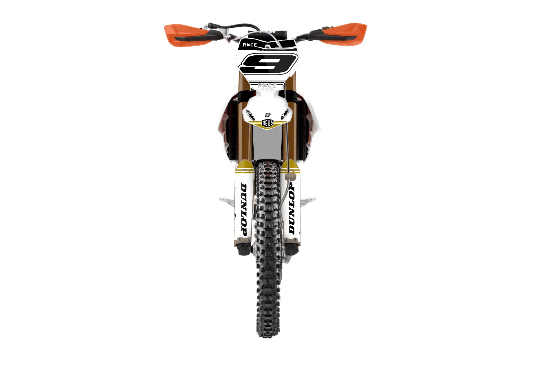 «Sharp» — готовый комплект графики серии Untucked для KTM Offroad Graphic Kit KTM XC-F 250 2019. В комплекте: графика на бак и боковые облицовки, крылья (переднее и заднее), передний щиток, номерные таблички, защита вилки. Материал: ПВХ-винил 80 мкр с холодной ламинацией 300 мкр, общая толщина 380 мкр; покрытие глянцевое или матовое на выбор. Устойчив к UV-излучению, воде, бензину и мойке высокого давления. Клей акриловый на сольвентной основе — постоянный, для гибких пластиков. На простых поверхностях монтируется без нагрева; для сложных изгибов рекомендуем фен. Этот пресет можно заказать как есть или взять за основу в конструкторе: поменять цвета, добавить стартовый номер и свой бренд. Производство — 3–5 рабочих дней, доставка по России СДЭКом или Почтой, по СНГ — курьерскими службами.