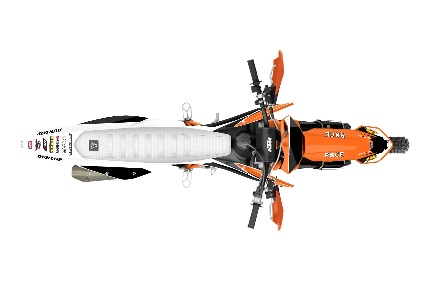 «Superb» — готовый комплект графики серии Untucked для KTM Offroad Graphic Kit KTM XC-F 250 2019. В комплекте: графика на бак и боковые облицовки, крылья (переднее и заднее), передний щиток, номерные таблички, защита вилки. Материал: ПВХ-винил 80 мкр с холодной ламинацией 300 мкр, общая толщина 380 мкр; покрытие глянцевое или матовое на выбор. Устойчив к UV-излучению, воде, бензину и мойке высокого давления. Клей акриловый на сольвентной основе — постоянный, для гибких пластиков. На простых поверхностях монтируется без нагрева; для сложных изгибов рекомендуем фен. Этот пресет можно заказать как есть или взять за основу в конструкторе: поменять цвета, добавить стартовый номер и свой бренд. Производство — 3–5 рабочих дней, доставка по России СДЭКом или Почтой, по СНГ — курьерскими службами.