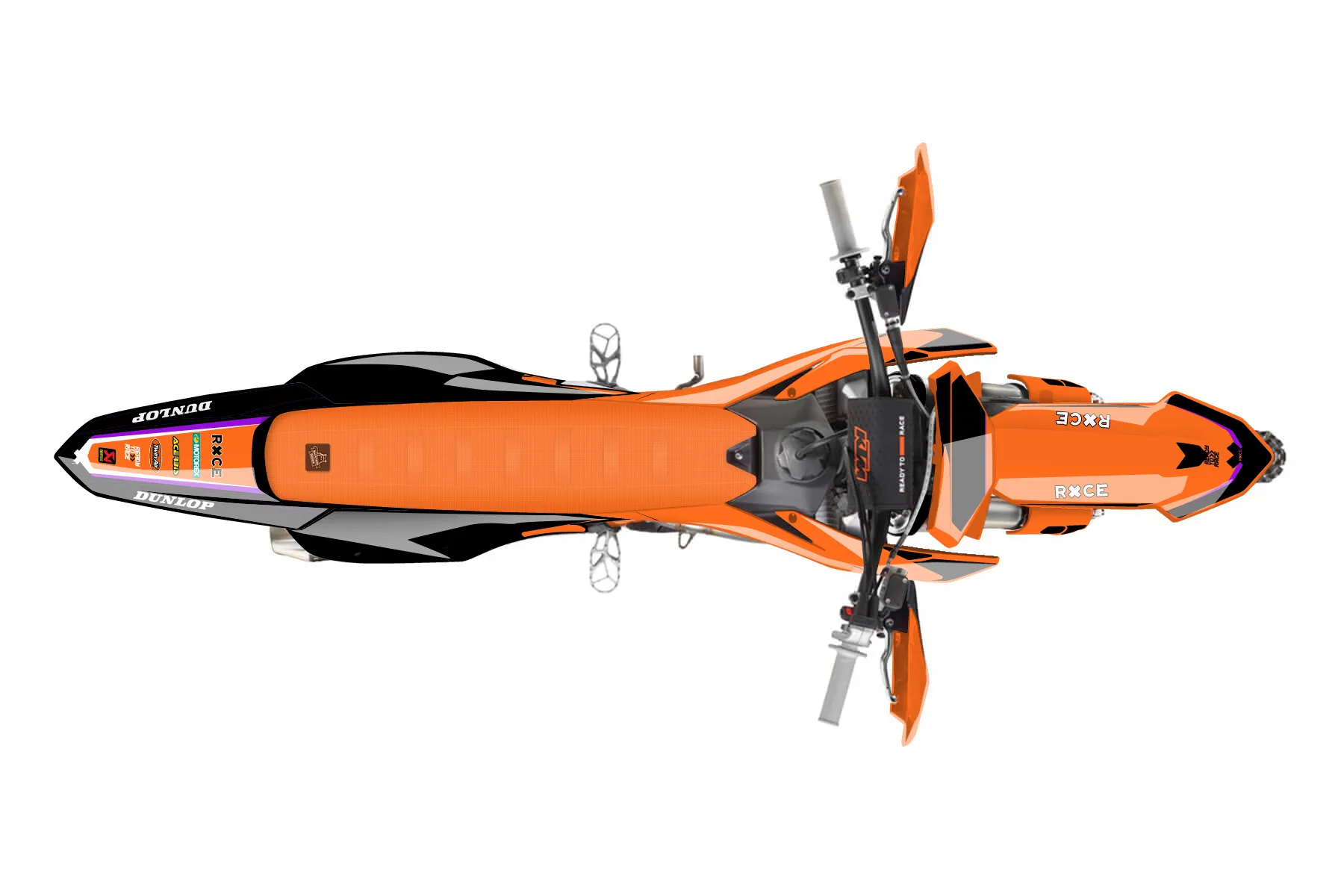 «23 KTM 1» — готовый комплект графики серии Flow для KTM Offroad Graphic Kit KTM XC-F 250 2023. В комплекте: графика на бак и боковые облицовки, крылья (переднее и заднее), передний щиток, номерные таблички, защита вилки. Материал: ПВХ-винил 80 мкр с холодной ламинацией 300 мкр, общая толщина 380 мкр; покрытие глянцевое или матовое на выбор. Устойчив к UV-излучению, воде, бензину и мойке высокого давления. Клей акриловый на сольвентной основе — постоянный, для гибких пластиков. На простых поверхностях монтируется без нагрева; для сложных изгибов рекомендуем фен. Этот пресет можно заказать как есть или взять за основу в конструкторе: поменять цвета, добавить стартовый номер и свой бренд. Производство — 3–5 рабочих дней, доставка по России СДЭКом или Почтой, по СНГ — курьерскими службами.