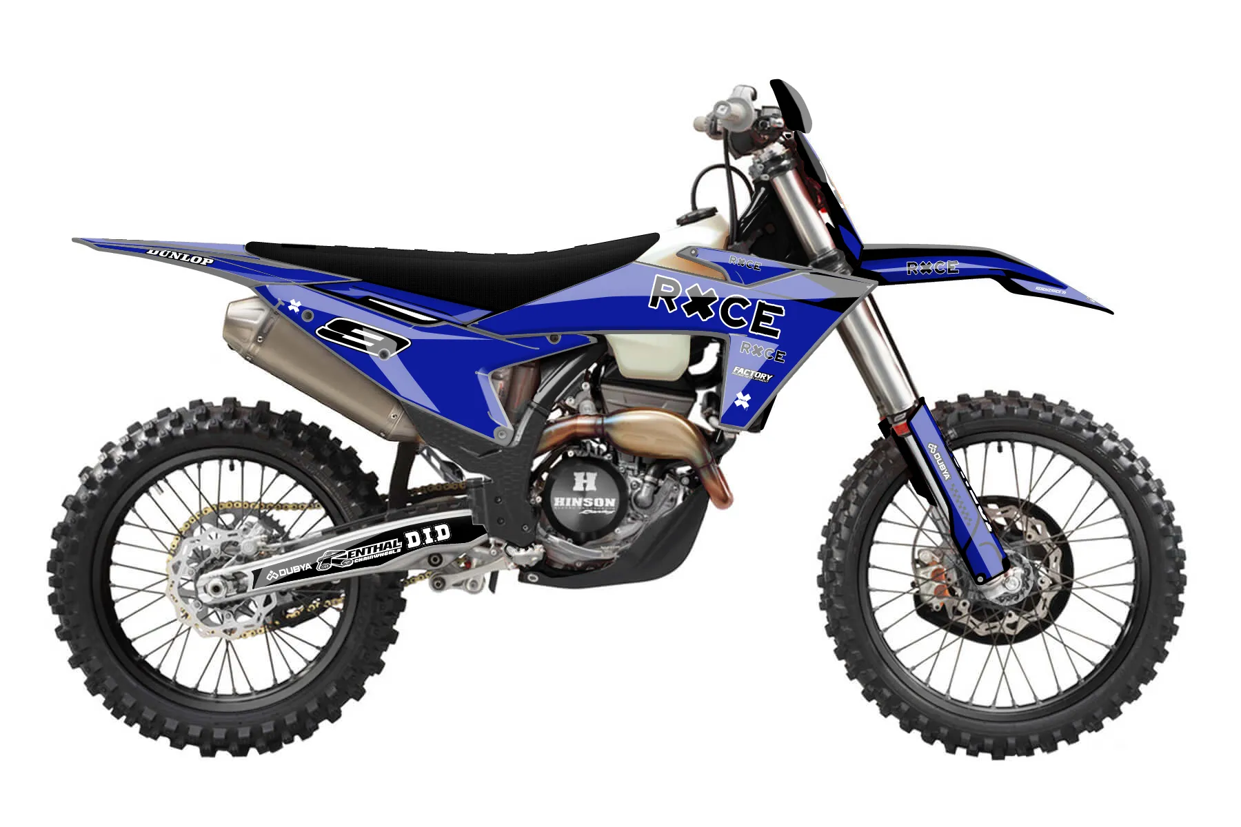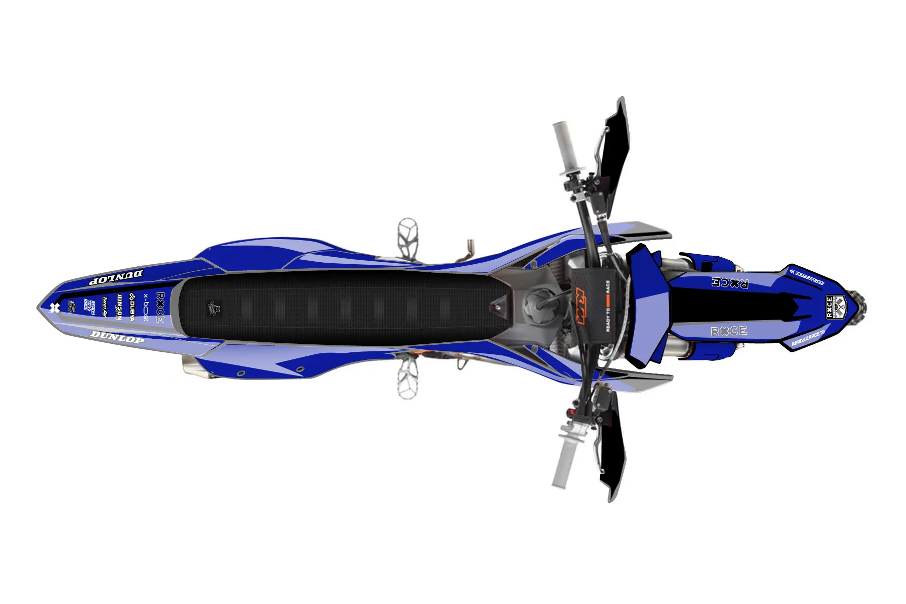 «blue» — готовый комплект графики серии Flow для KTM Offroad Graphic Kit KTM XC-F 250 2023. В комплекте: графика на бак и боковые облицовки, крылья (переднее и заднее), передний щиток, номерные таблички, защита вилки. Материал: ПВХ-винил 80 мкр с холодной ламинацией 300 мкр, общая толщина 380 мкр; покрытие глянцевое или матовое на выбор. Устойчив к UV-излучению, воде, бензину и мойке высокого давления. Клей акриловый на сольвентной основе — постоянный, для гибких пластиков. На простых поверхностях монтируется без нагрева; для сложных изгибов рекомендуем фен. Этот пресет можно заказать как есть или взять за основу в конструкторе: поменять цвета, добавить стартовый номер и свой бренд. Производство — 3–5 рабочих дней, доставка по России СДЭКом или Почтой, по СНГ — курьерскими службами.