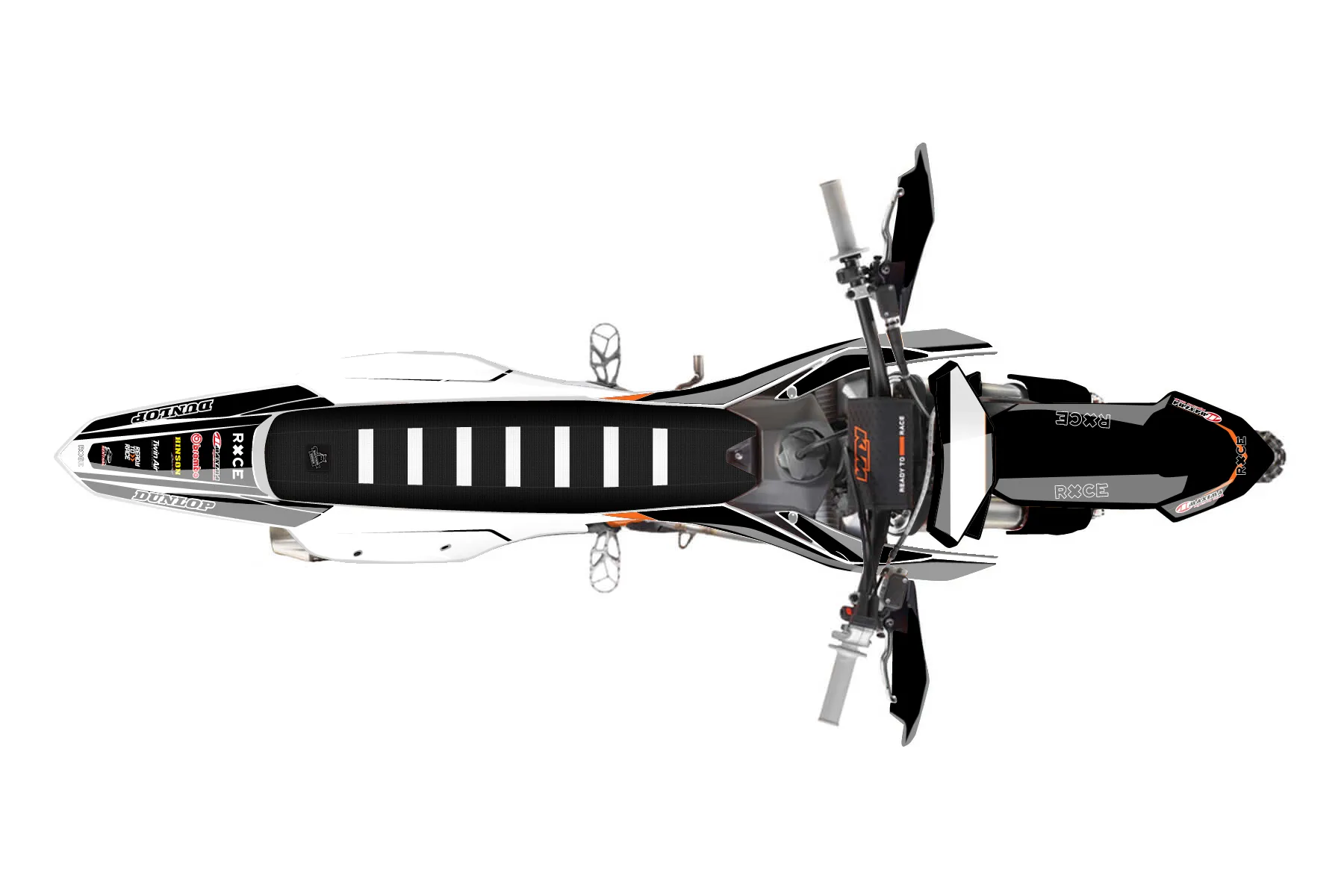 «Dew» — готовый комплект графики серии Flow для KTM Offroad Graphic Kit KTM XC-F 250 2023. В комплекте: графика на бак и боковые облицовки, крылья (переднее и заднее), передний щиток, номерные таблички, защита вилки. Материал: ПВХ-винил 80 мкр с холодной ламинацией 300 мкр, общая толщина 380 мкр; покрытие глянцевое или матовое на выбор. Устойчив к UV-излучению, воде, бензину и мойке высокого давления. Клей акриловый на сольвентной основе — постоянный, для гибких пластиков. На простых поверхностях монтируется без нагрева; для сложных изгибов рекомендуем фен. Этот пресет можно заказать как есть или взять за основу в конструкторе: поменять цвета, добавить стартовый номер и свой бренд. Производство — 3–5 рабочих дней, доставка по России СДЭКом или Почтой, по СНГ — курьерскими службами.