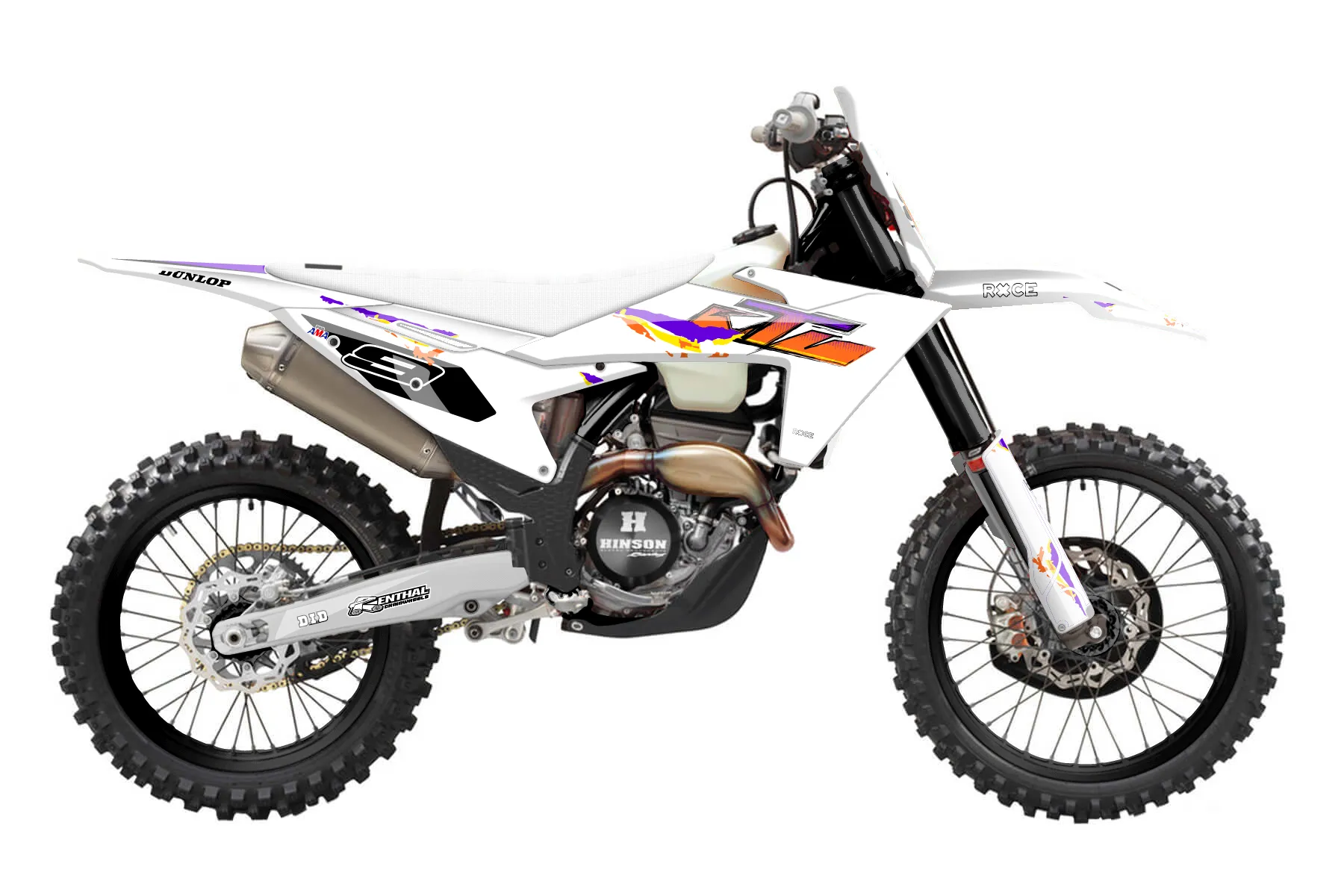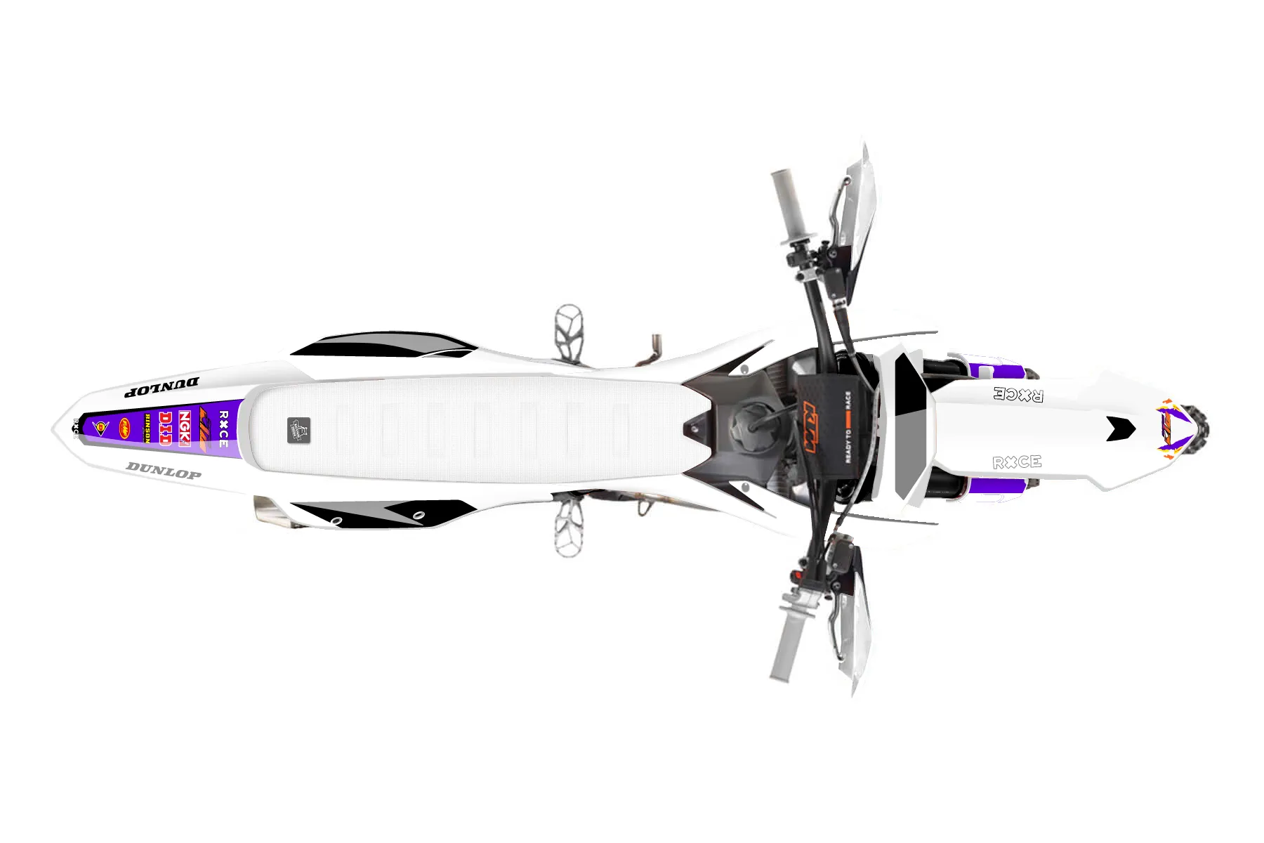 «Leo» — готовый комплект графики серии Flow для KTM Offroad Graphic Kit KTM XC-F 250 2023. В комплекте: графика на бак и боковые облицовки, крылья (переднее и заднее), передний щиток, номерные таблички, защита вилки. Материал: ПВХ-винил 80 мкр с холодной ламинацией 300 мкр, общая толщина 380 мкр; покрытие глянцевое или матовое на выбор. Устойчив к UV-излучению, воде, бензину и мойке высокого давления. Клей акриловый на сольвентной основе — постоянный, для гибких пластиков. На простых поверхностях монтируется без нагрева; для сложных изгибов рекомендуем фен. Этот пресет можно заказать как есть или взять за основу в конструкторе: поменять цвета, добавить стартовый номер и свой бренд. Производство — 3–5 рабочих дней, доставка по России СДЭКом или Почтой, по СНГ — курьерскими службами.