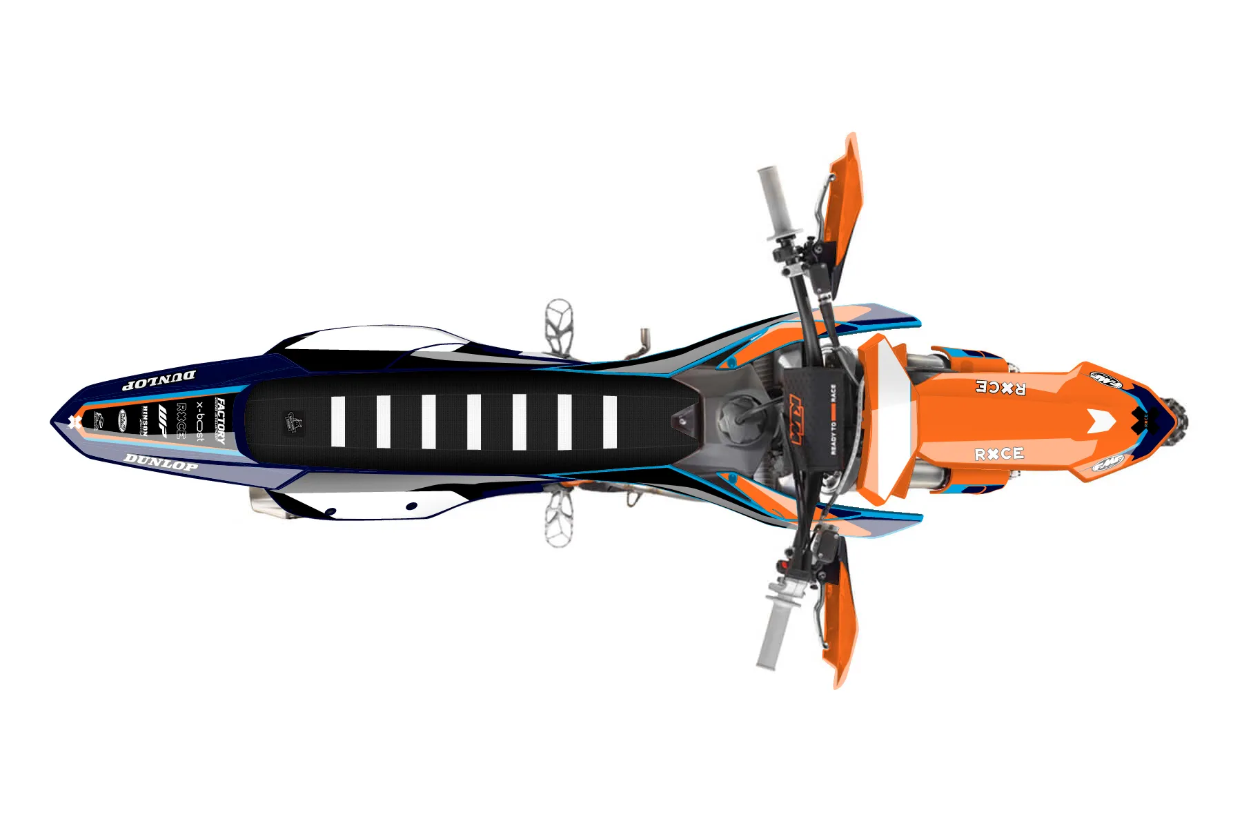 «Meta» — готовый комплект графики серии Flow для KTM Offroad Graphic Kit KTM XC-F 250 2023. В комплекте: графика на бак и боковые облицовки, крылья (переднее и заднее), передний щиток, номерные таблички, защита вилки. Материал: ПВХ-винил 80 мкр с холодной ламинацией 300 мкр, общая толщина 380 мкр; покрытие глянцевое или матовое на выбор. Устойчив к UV-излучению, воде, бензину и мойке высокого давления. Клей акриловый на сольвентной основе — постоянный, для гибких пластиков. На простых поверхностях монтируется без нагрева; для сложных изгибов рекомендуем фен. Этот пресет можно заказать как есть или взять за основу в конструкторе: поменять цвета, добавить стартовый номер и свой бренд. Производство — 3–5 рабочих дней, доставка по России СДЭКом или Почтой, по СНГ — курьерскими службами.