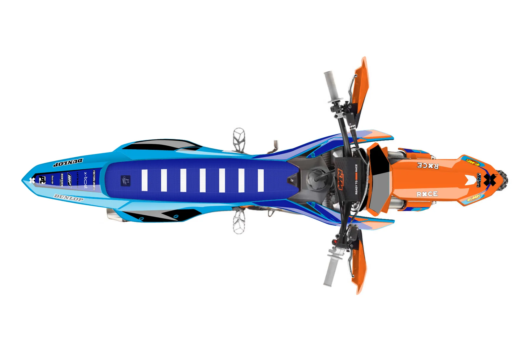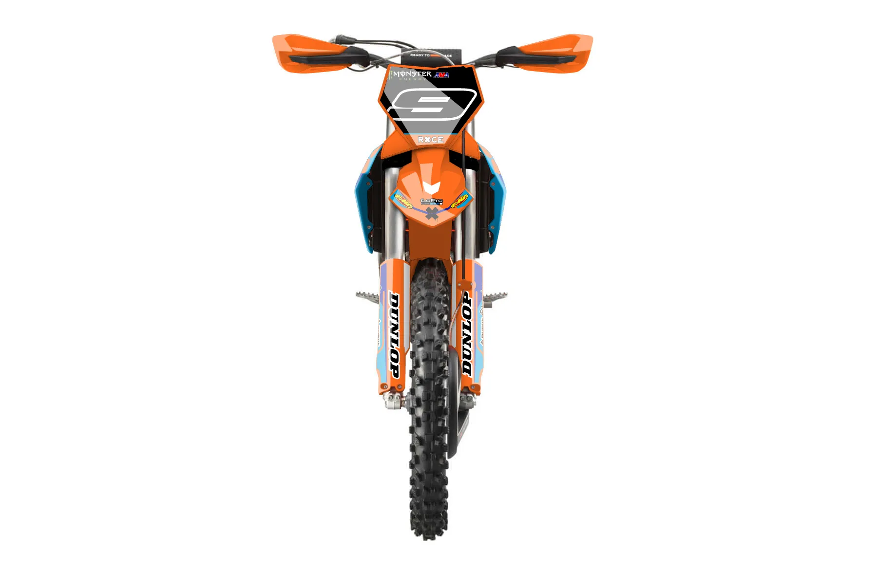«Signature» — готовый комплект графики серии Flow для KTM Offroad Graphic Kit KTM XC-F 250 2023. В комплекте: графика на бак и боковые облицовки, крылья (переднее и заднее), передний щиток, номерные таблички, защита вилки. Материал: ПВХ-винил 80 мкр с холодной ламинацией 300 мкр, общая толщина 380 мкр; покрытие глянцевое или матовое на выбор. Устойчив к UV-излучению, воде, бензину и мойке высокого давления. Клей акриловый на сольвентной основе — постоянный, для гибких пластиков. На простых поверхностях монтируется без нагрева; для сложных изгибов рекомендуем фен. Этот пресет можно заказать как есть или взять за основу в конструкторе: поменять цвета, добавить стартовый номер и свой бренд. Производство — 3–5 рабочих дней, доставка по России СДЭКом или Почтой, по СНГ — курьерскими службами.