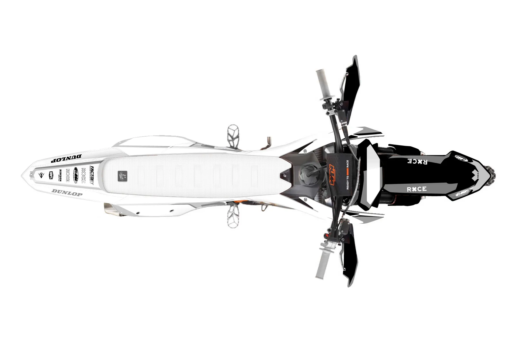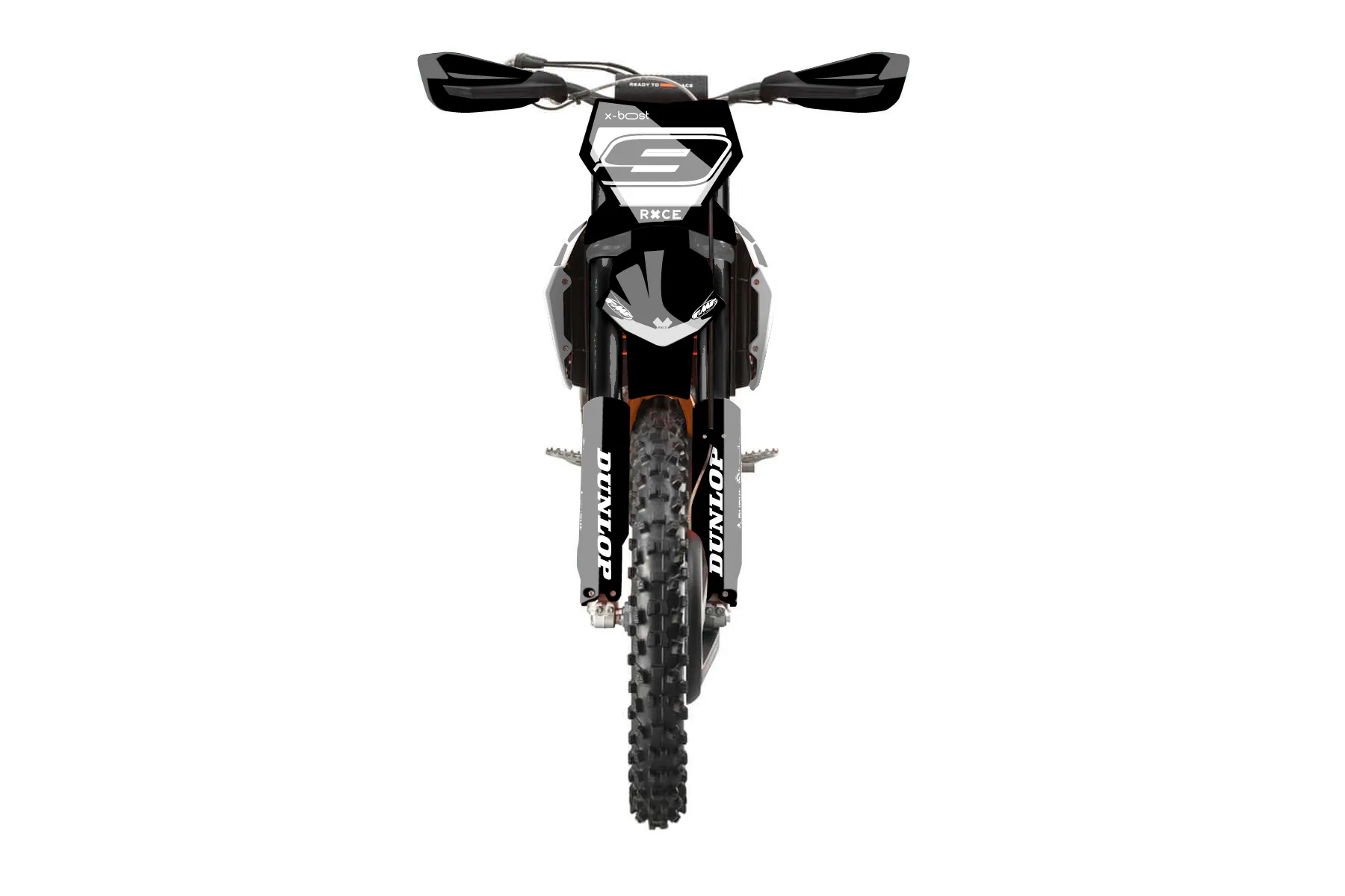 «Space» — готовый комплект графики серии Flow для KTM Offroad Graphic Kit KTM XC-F 250 2023. В комплекте: графика на бак и боковые облицовки, крылья (переднее и заднее), передний щиток, номерные таблички, защита вилки. Материал: ПВХ-винил 80 мкр с холодной ламинацией 300 мкр, общая толщина 380 мкр; покрытие глянцевое или матовое на выбор. Устойчив к UV-излучению, воде, бензину и мойке высокого давления. Клей акриловый на сольвентной основе — постоянный, для гибких пластиков. На простых поверхностях монтируется без нагрева; для сложных изгибов рекомендуем фен. Этот пресет можно заказать как есть или взять за основу в конструкторе: поменять цвета, добавить стартовый номер и свой бренд. Производство — 3–5 рабочих дней, доставка по России СДЭКом или Почтой, по СНГ — курьерскими службами.