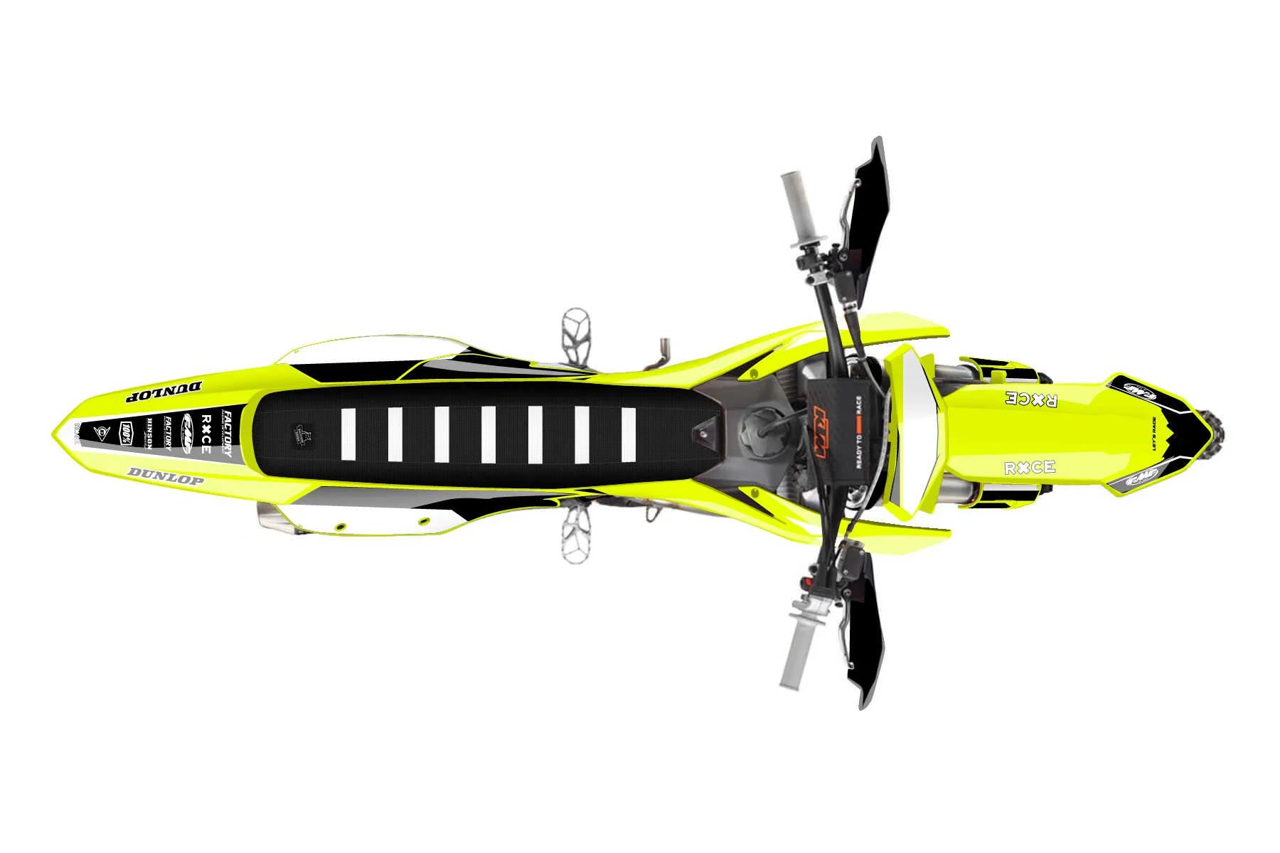 «Bright Neon» — готовый комплект графики серии Maverick для KTM Offroad Graphic Kit KTM XC-F 250 2023. В комплекте: графика на бак и боковые облицовки, крылья (переднее и заднее), передний щиток, номерные таблички, защита вилки. Материал: ПВХ-винил 80 мкр с холодной ламинацией 300 мкр, общая толщина 380 мкр; покрытие глянцевое или матовое на выбор. Устойчив к UV-излучению, воде, бензину и мойке высокого давления. Клей акриловый на сольвентной основе — постоянный, для гибких пластиков. На простых поверхностях монтируется без нагрева; для сложных изгибов рекомендуем фен. Этот пресет можно заказать как есть или взять за основу в конструкторе: поменять цвета, добавить стартовый номер и свой бренд. Производство — 3–5 рабочих дней, доставка по России СДЭКом или Почтой, по СНГ — курьерскими службами.