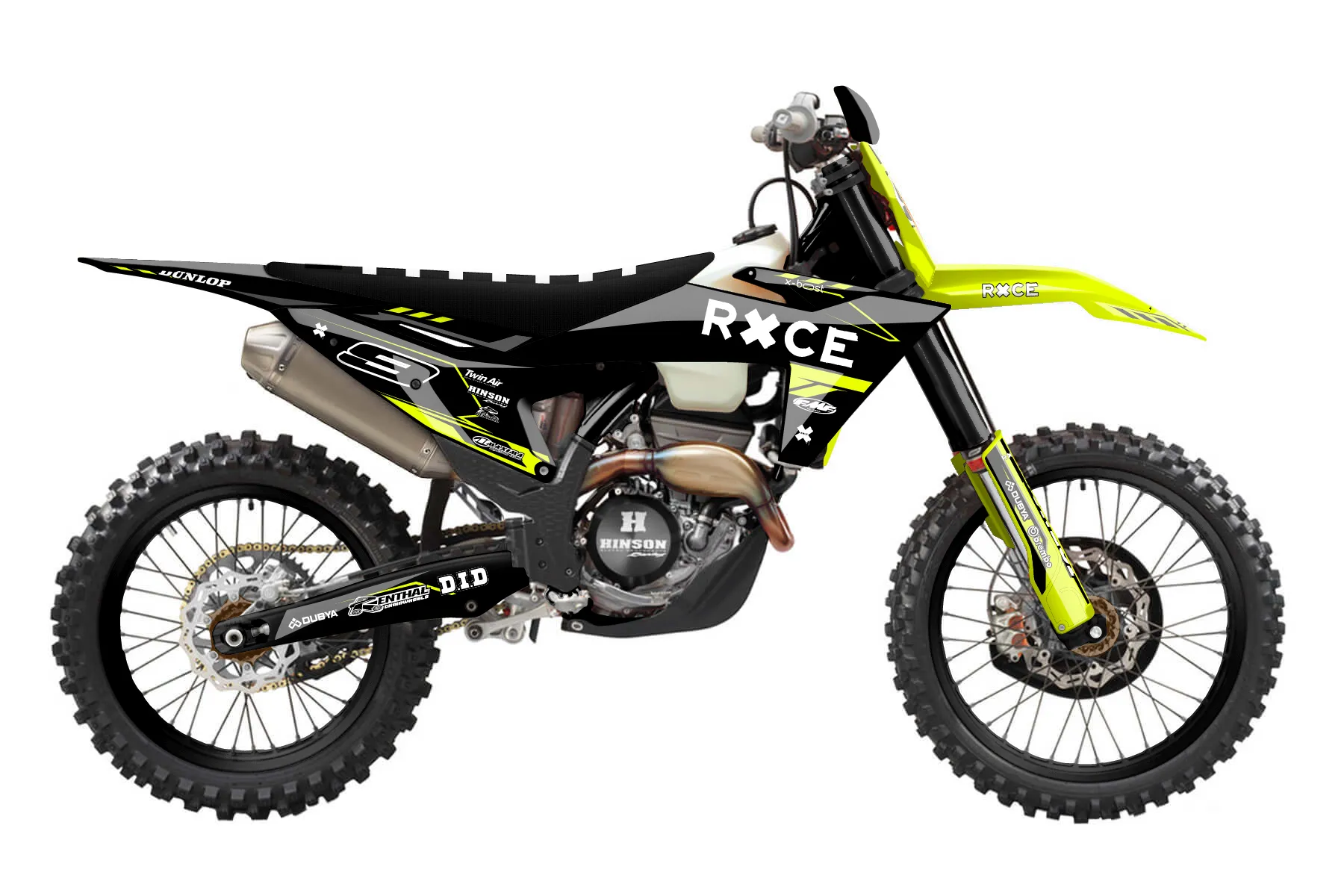 «Kitted Neon» — готовый комплект графики серии Maverick для KTM Offroad Graphic Kit KTM XC-F 250 2023. В комплекте: графика на бак и боковые облицовки, крылья (переднее и заднее), передний щиток, номерные таблички, защита вилки. Материал: ПВХ-винил 80 мкр с холодной ламинацией 300 мкр, общая толщина 380 мкр; покрытие глянцевое или матовое на выбор. Устойчив к UV-излучению, воде, бензину и мойке высокого давления. Клей акриловый на сольвентной основе — постоянный, для гибких пластиков. На простых поверхностях монтируется без нагрева; для сложных изгибов рекомендуем фен. Этот пресет можно заказать как есть или взять за основу в конструкторе: поменять цвета, добавить стартовый номер и свой бренд. Производство — 3–5 рабочих дней, доставка по России СДЭКом или Почтой, по СНГ — курьерскими службами.