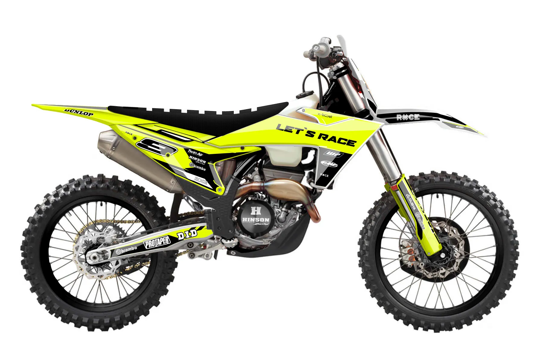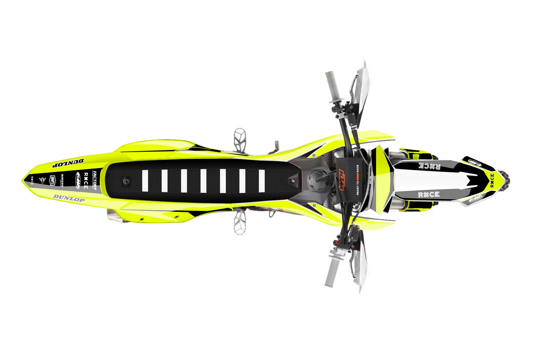 «Ryder Neon» — готовый комплект графики серии Maverick для KTM Offroad Graphic Kit KTM XC-F 250 2023. В комплекте: графика на бак и боковые облицовки, крылья (переднее и заднее), передний щиток, номерные таблички, защита вилки. Материал: ПВХ-винил 80 мкр с холодной ламинацией 300 мкр, общая толщина 380 мкр; покрытие глянцевое или матовое на выбор. Устойчив к UV-излучению, воде, бензину и мойке высокого давления. Клей акриловый на сольвентной основе — постоянный, для гибких пластиков. На простых поверхностях монтируется без нагрева; для сложных изгибов рекомендуем фен. Этот пресет можно заказать как есть или взять за основу в конструкторе: поменять цвета, добавить стартовый номер и свой бренд. Производство — 3–5 рабочих дней, доставка по России СДЭКом или Почтой, по СНГ — курьерскими службами.