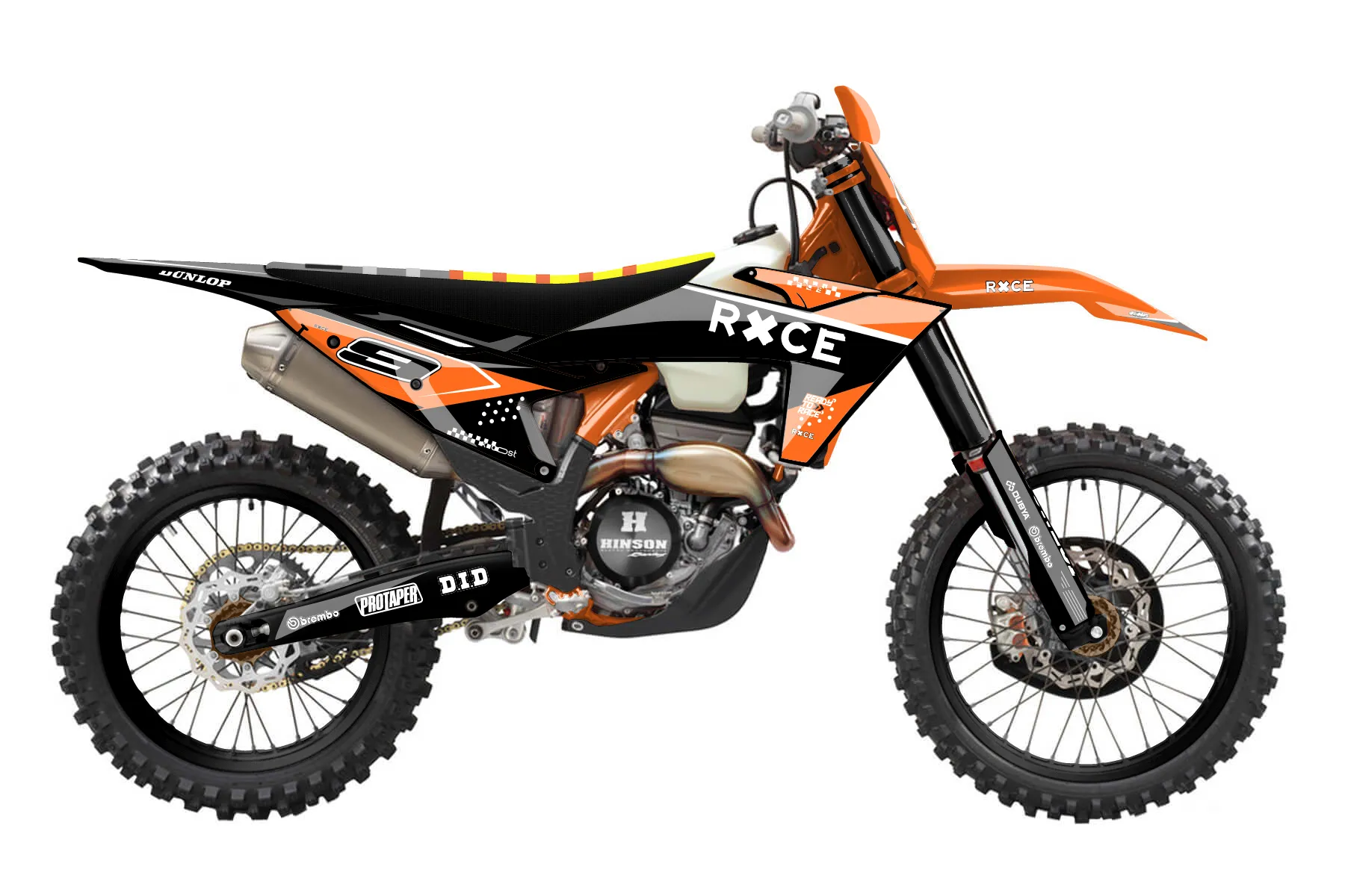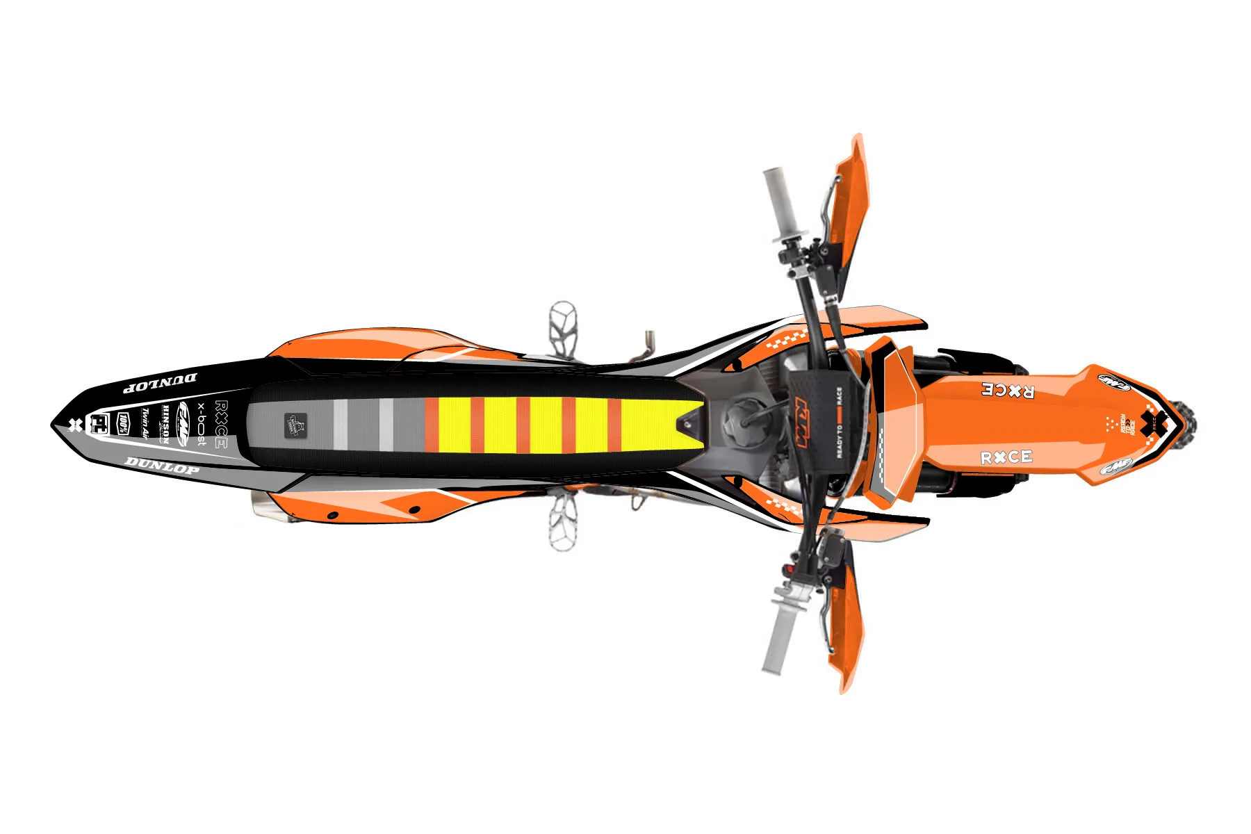 «Classy» — готовый комплект графики серии Staple для KTM Offroad Graphic Kit KTM XC-F 250 2023. В комплекте: графика на бак и боковые облицовки, крылья (переднее и заднее), передний щиток, номерные таблички, защита вилки. Материал: ПВХ-винил 80 мкр с холодной ламинацией 300 мкр, общая толщина 380 мкр; покрытие глянцевое или матовое на выбор. Устойчив к UV-излучению, воде, бензину и мойке высокого давления. Клей акриловый на сольвентной основе — постоянный, для гибких пластиков. На простых поверхностях монтируется без нагрева; для сложных изгибов рекомендуем фен. Этот пресет можно заказать как есть или взять за основу в конструкторе: поменять цвета, добавить стартовый номер и свой бренд. Производство — 3–5 рабочих дней, доставка по России СДЭКом или Почтой, по СНГ — курьерскими службами.