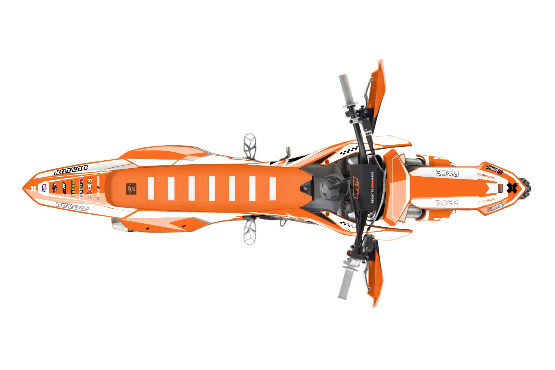 «CustomDesign» — готовый комплект графики серии Staple для KTM Offroad Graphic Kit KTM XC-F 250 2023. В комплекте: графика на бак и боковые облицовки, крылья (переднее и заднее), передний щиток, номерные таблички, защита вилки. Материал: ПВХ-винил 80 мкр с холодной ламинацией 300 мкр, общая толщина 380 мкр; покрытие глянцевое или матовое на выбор. Устойчив к UV-излучению, воде, бензину и мойке высокого давления. Клей акриловый на сольвентной основе — постоянный, для гибких пластиков. На простых поверхностях монтируется без нагрева; для сложных изгибов рекомендуем фен. Этот пресет можно заказать как есть или взять за основу в конструкторе: поменять цвета, добавить стартовый номер и свой бренд. Производство — 3–5 рабочих дней, доставка по России СДЭКом или Почтой, по СНГ — курьерскими службами.