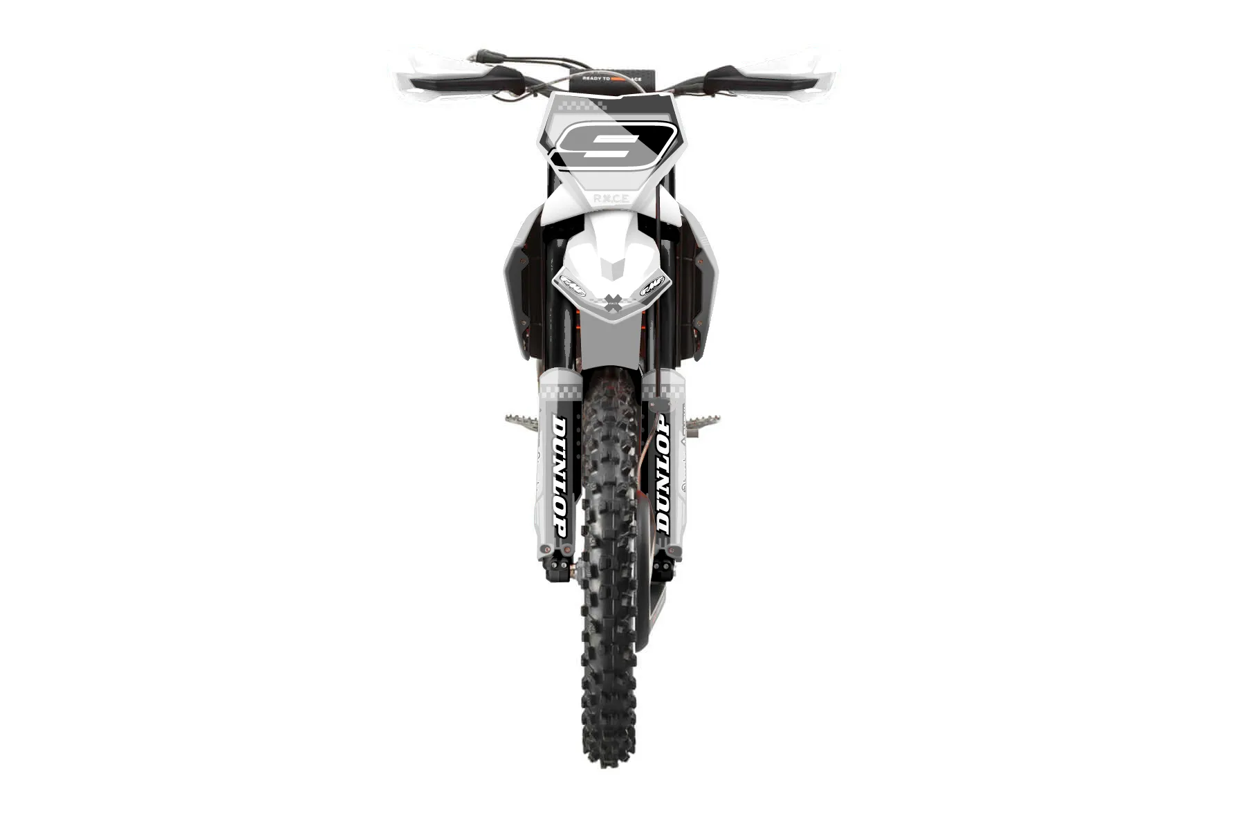 «Drizzle» — готовый комплект графики серии Staple для KTM Offroad Graphic Kit KTM XC-F 250 2023. В комплекте: графика на бак и боковые облицовки, крылья (переднее и заднее), передний щиток, номерные таблички, защита вилки. Материал: ПВХ-винил 80 мкр с холодной ламинацией 300 мкр, общая толщина 380 мкр; покрытие глянцевое или матовое на выбор. Устойчив к UV-излучению, воде, бензину и мойке высокого давления. Клей акриловый на сольвентной основе — постоянный, для гибких пластиков. На простых поверхностях монтируется без нагрева; для сложных изгибов рекомендуем фен. Этот пресет можно заказать как есть или взять за основу в конструкторе: поменять цвета, добавить стартовый номер и свой бренд. Производство — 3–5 рабочих дней, доставка по России СДЭКом или Почтой, по СНГ — курьерскими службами.