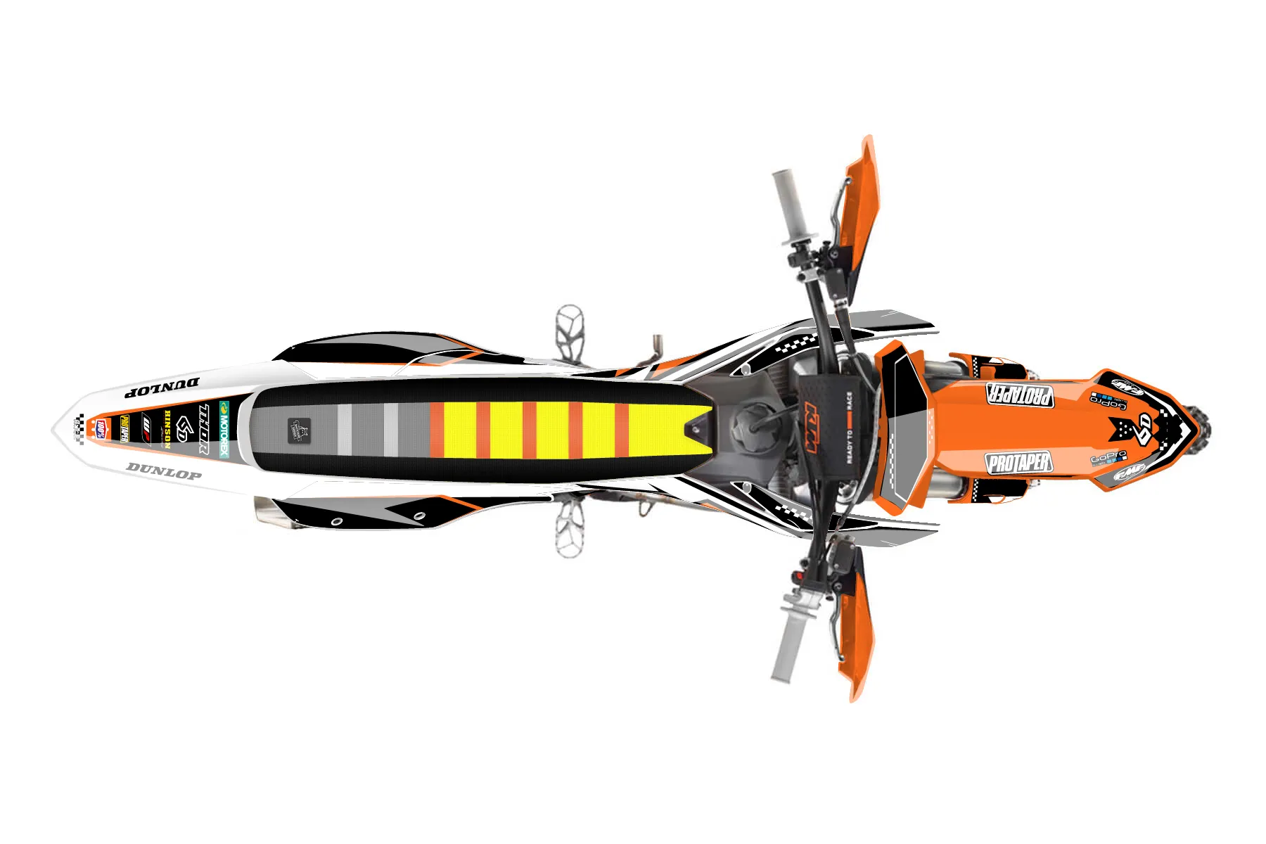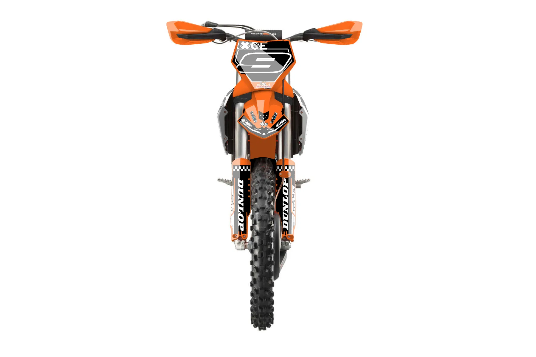 «Freeman Custom» — готовый комплект графики серии Staple для KTM Offroad Graphic Kit KTM XC-F 250 2023. В комплекте: графика на бак и боковые облицовки, крылья (переднее и заднее), передний щиток, номерные таблички, защита вилки. Материал: ПВХ-винил 80 мкр с холодной ламинацией 300 мкр, общая толщина 380 мкр; покрытие глянцевое или матовое на выбор. Устойчив к UV-излучению, воде, бензину и мойке высокого давления. Клей акриловый на сольвентной основе — постоянный, для гибких пластиков. На простых поверхностях монтируется без нагрева; для сложных изгибов рекомендуем фен. Этот пресет можно заказать как есть или взять за основу в конструкторе: поменять цвета, добавить стартовый номер и свой бренд. Производство — 3–5 рабочих дней, доставка по России СДЭКом или Почтой, по СНГ — курьерскими службами.