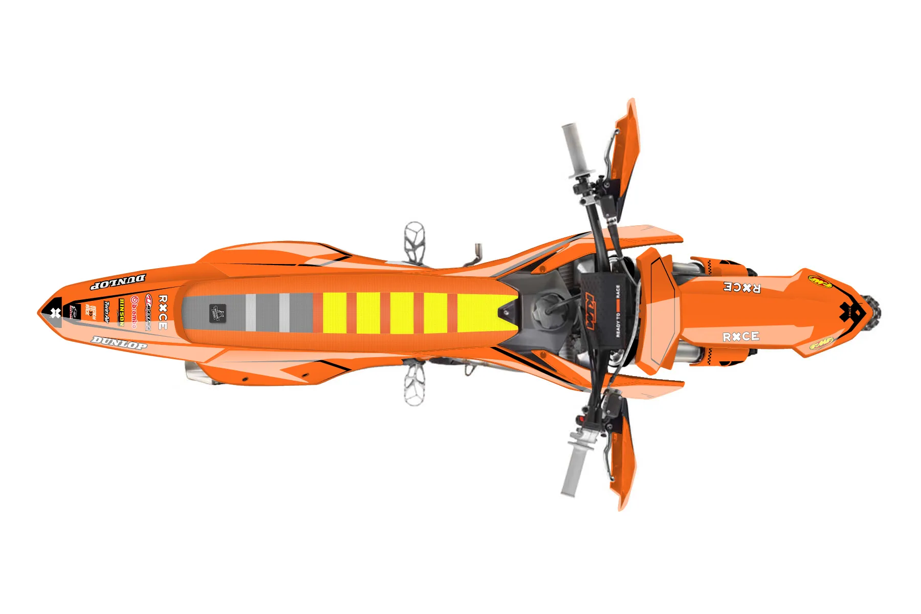 «KTM Factory - Marcus» — готовый комплект графики серии Staple для KTM Offroad Graphic Kit KTM XC-F 250 2023. В комплекте: графика на бак и боковые облицовки, крылья (переднее и заднее), передний щиток, номерные таблички, защита вилки. Материал: ПВХ-винил 80 мкр с холодной ламинацией 300 мкр, общая толщина 380 мкр; покрытие глянцевое или матовое на выбор. Устойчив к UV-излучению, воде, бензину и мойке высокого давления. Клей акриловый на сольвентной основе — постоянный, для гибких пластиков. На простых поверхностях монтируется без нагрева; для сложных изгибов рекомендуем фен. Этот пресет можно заказать как есть или взять за основу в конструкторе: поменять цвета, добавить стартовый номер и свой бренд. Производство — 3–5 рабочих дней, доставка по России СДЭКом или Почтой, по СНГ — курьерскими службами.