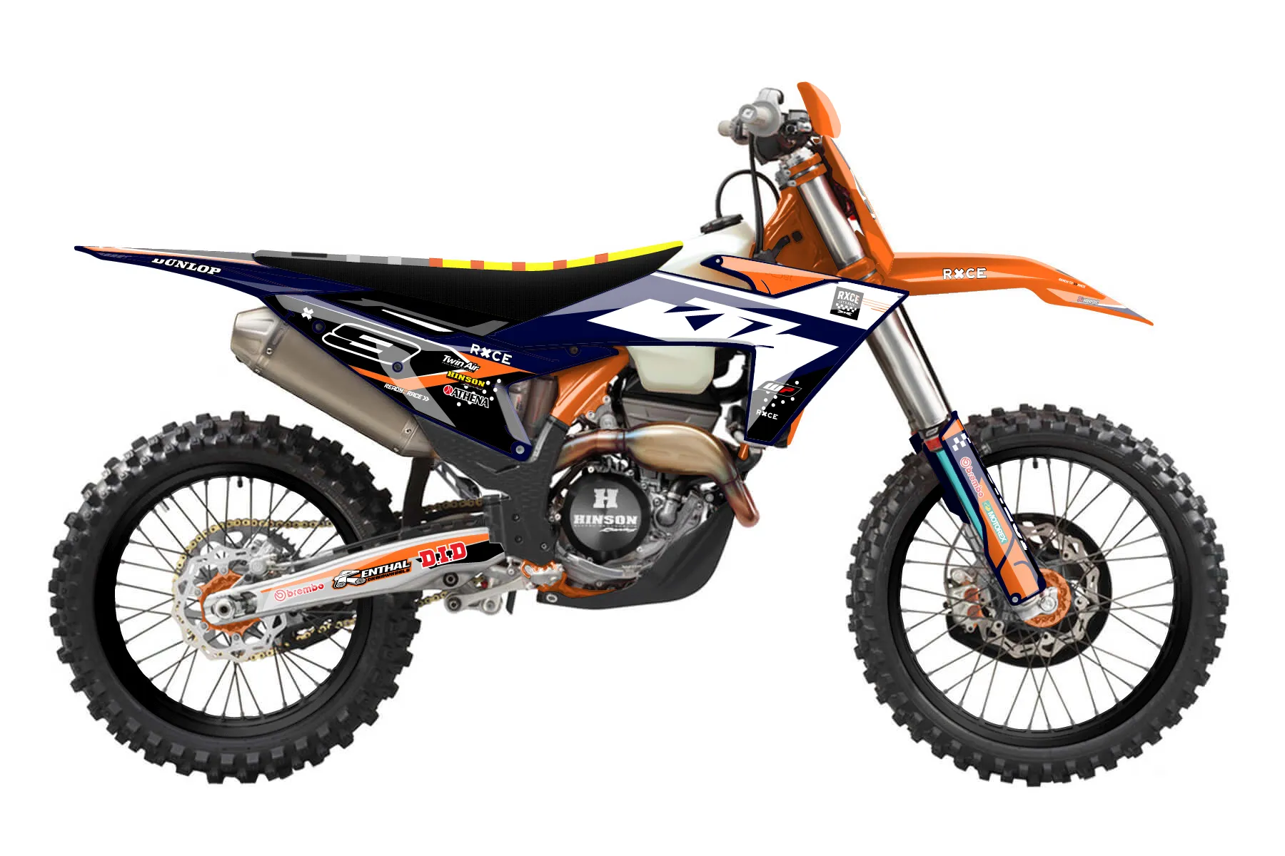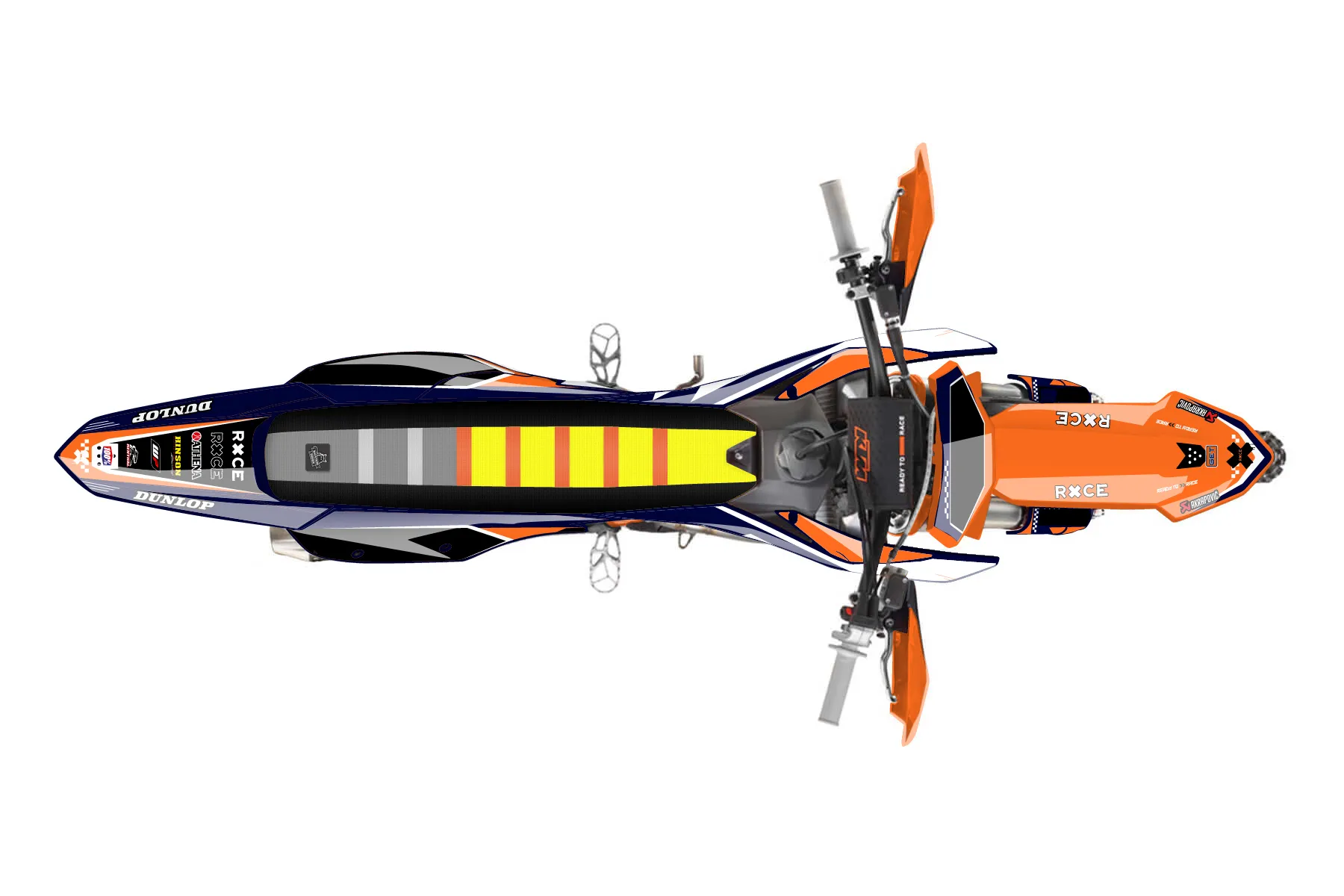 «Rage» — готовый комплект графики серии Staple для KTM Offroad Graphic Kit KTM XC-F 250 2023. В комплекте: графика на бак и боковые облицовки, крылья (переднее и заднее), передний щиток, номерные таблички, защита вилки. Материал: ПВХ-винил 80 мкр с холодной ламинацией 300 мкр, общая толщина 380 мкр; покрытие глянцевое или матовое на выбор. Устойчив к UV-излучению, воде, бензину и мойке высокого давления. Клей акриловый на сольвентной основе — постоянный, для гибких пластиков. На простых поверхностях монтируется без нагрева; для сложных изгибов рекомендуем фен. Этот пресет можно заказать как есть или взять за основу в конструкторе: поменять цвета, добавить стартовый номер и свой бренд. Производство — 3–5 рабочих дней, доставка по России СДЭКом или Почтой, по СНГ — курьерскими службами.