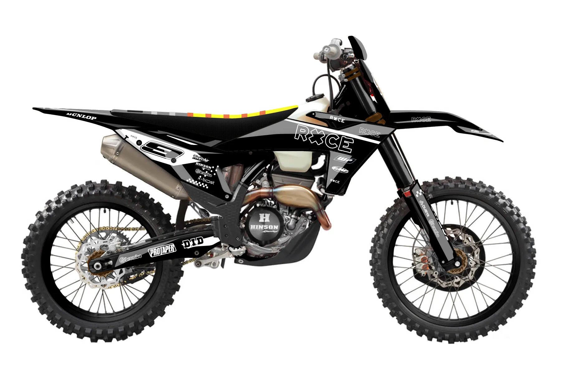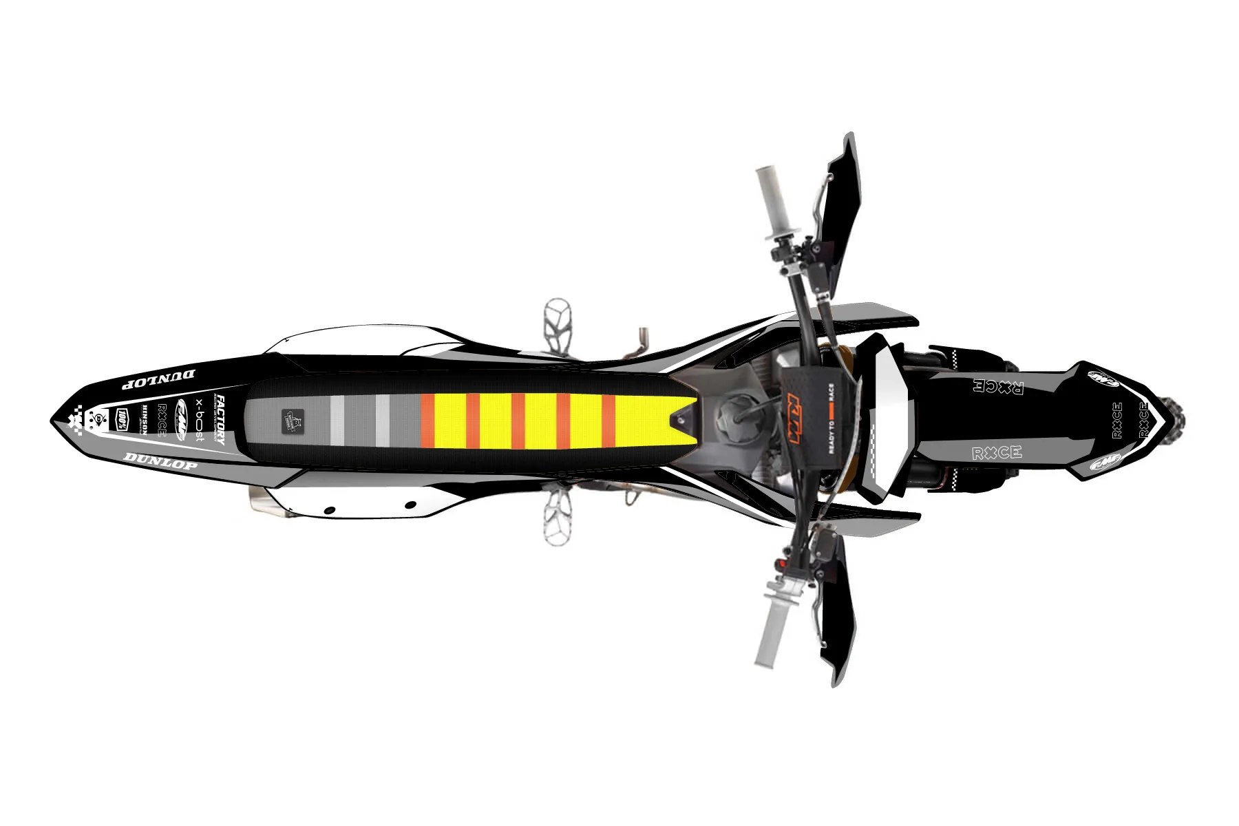 «Ryder» — готовый комплект графики серии Staple для KTM Offroad Graphic Kit KTM XC-F 250 2023. В комплекте: графика на бак и боковые облицовки, крылья (переднее и заднее), передний щиток, номерные таблички, защита вилки. Материал: ПВХ-винил 80 мкр с холодной ламинацией 300 мкр, общая толщина 380 мкр; покрытие глянцевое или матовое на выбор. Устойчив к UV-излучению, воде, бензину и мойке высокого давления. Клей акриловый на сольвентной основе — постоянный, для гибких пластиков. На простых поверхностях монтируется без нагрева; для сложных изгибов рекомендуем фен. Этот пресет можно заказать как есть или взять за основу в конструкторе: поменять цвета, добавить стартовый номер и свой бренд. Производство — 3–5 рабочих дней, доставка по России СДЭКом или Почтой, по СНГ — курьерскими службами.