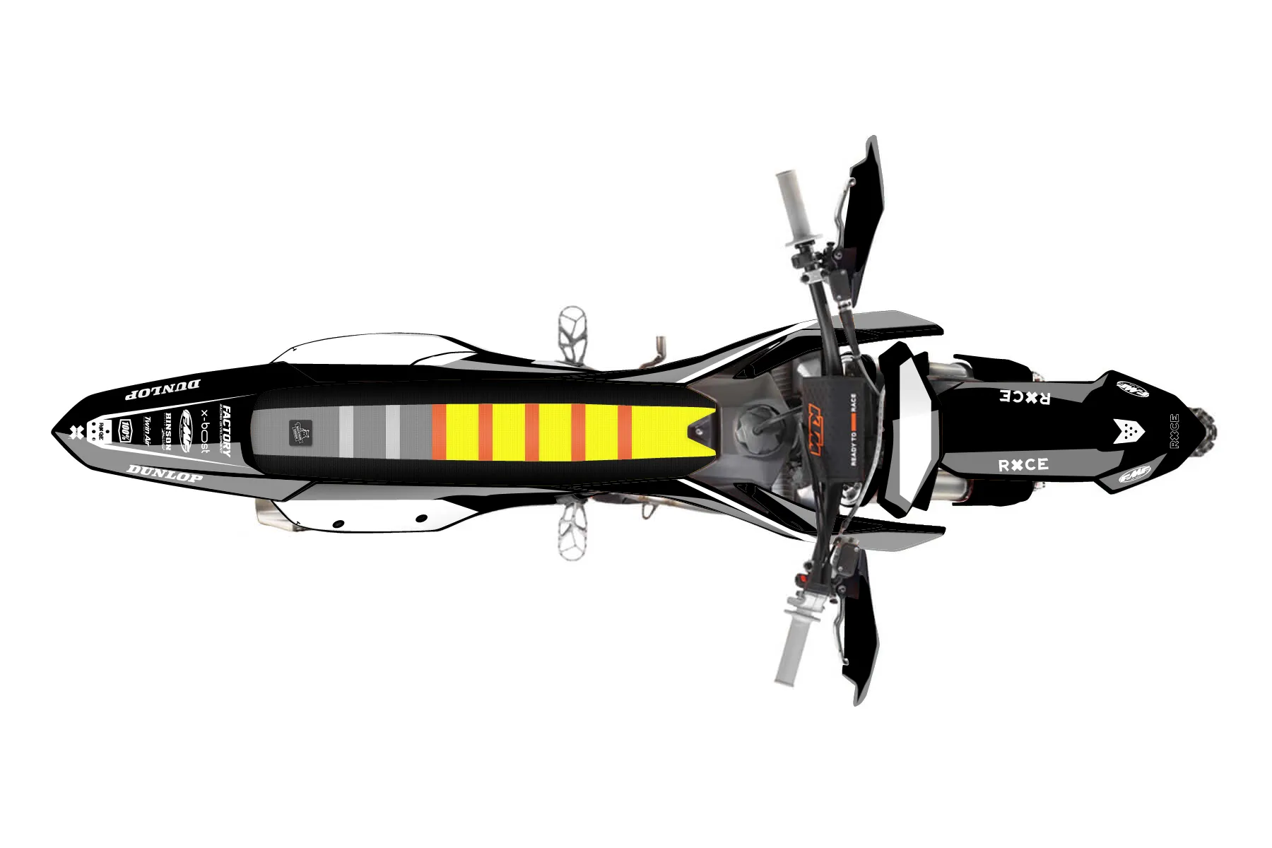 «Vogue» — готовый комплект графики серии Staple для KTM Offroad Graphic Kit KTM XC-F 250 2023. В комплекте: графика на бак и боковые облицовки, крылья (переднее и заднее), передний щиток, номерные таблички, защита вилки. Материал: ПВХ-винил 80 мкр с холодной ламинацией 300 мкр, общая толщина 380 мкр; покрытие глянцевое или матовое на выбор. Устойчив к UV-излучению, воде, бензину и мойке высокого давления. Клей акриловый на сольвентной основе — постоянный, для гибких пластиков. На простых поверхностях монтируется без нагрева; для сложных изгибов рекомендуем фен. Этот пресет можно заказать как есть или взять за основу в конструкторе: поменять цвета, добавить стартовый номер и свой бренд. Производство — 3–5 рабочих дней, доставка по России СДЭКом или Почтой, по СНГ — курьерскими службами.