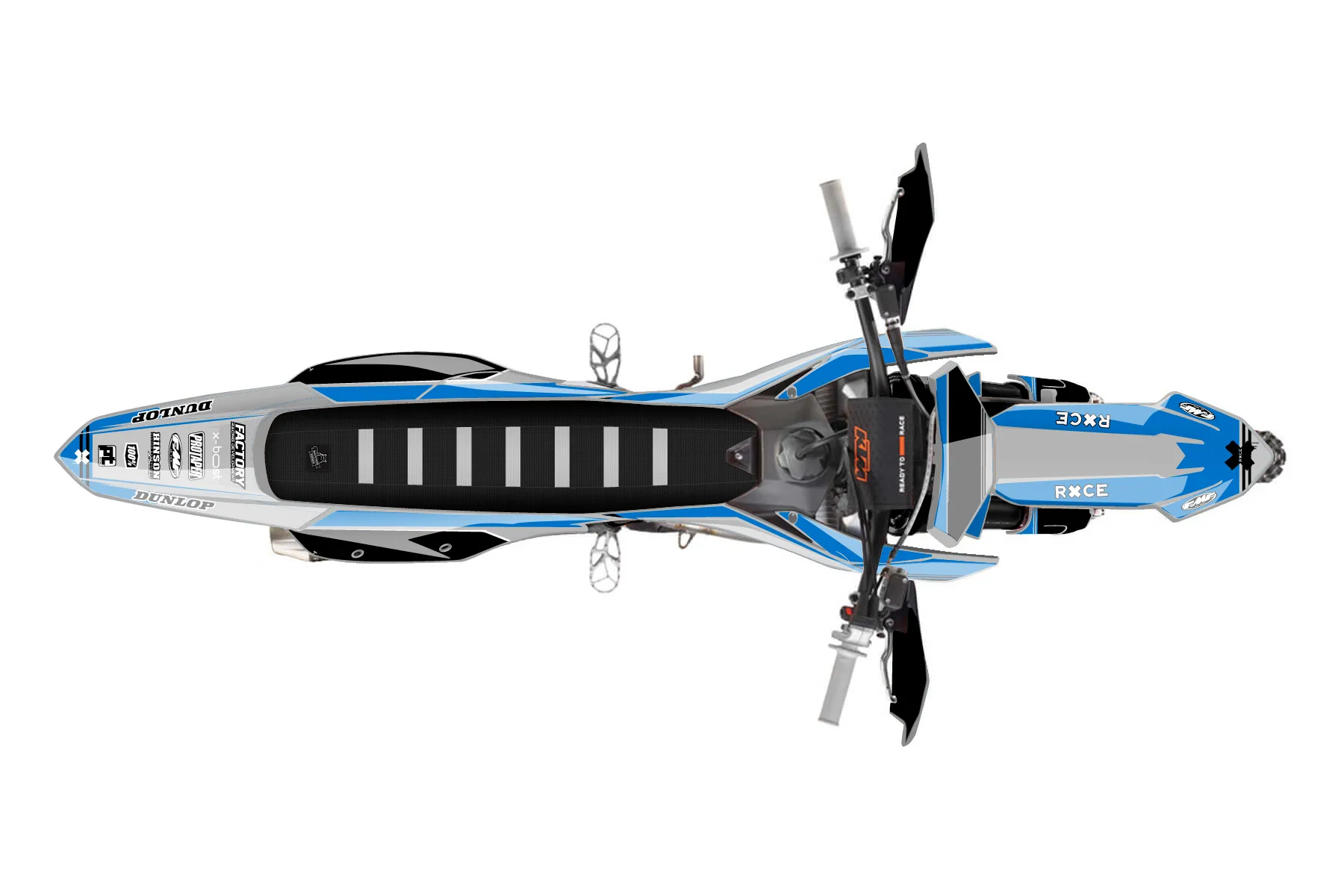 «blue grey black fasthouse» — готовый комплект графики серии Untucked для KTM Offroad Graphic Kit KTM XC-F 250 2023. В комплекте: графика на бак и боковые облицовки, крылья (переднее и заднее), передний щиток, номерные таблички, защита вилки. Материал: ПВХ-винил 80 мкр с холодной ламинацией 300 мкр, общая толщина 380 мкр; покрытие глянцевое или матовое на выбор. Устойчив к UV-излучению, воде, бензину и мойке высокого давления. Клей акриловый на сольвентной основе — постоянный, для гибких пластиков. На простых поверхностях монтируется без нагрева; для сложных изгибов рекомендуем фен. Этот пресет можно заказать как есть или взять за основу в конструкторе: поменять цвета, добавить стартовый номер и свой бренд. Производство — 3–5 рабочих дней, доставка по России СДЭКом или Почтой, по СНГ — курьерскими службами.
