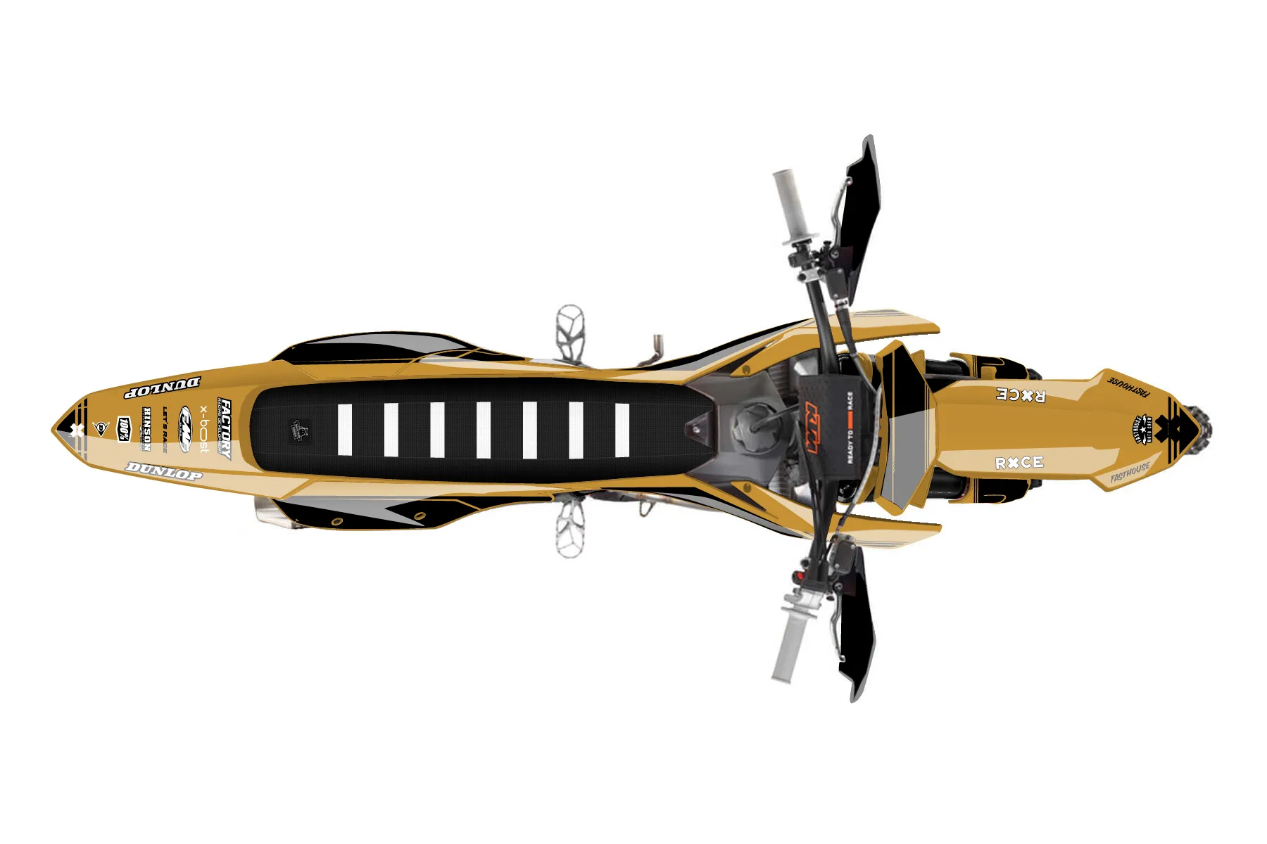 «Calm» — готовый комплект графики серии Untucked для KTM Offroad Graphic Kit KTM XC-F 250 2023. В комплекте: графика на бак и боковые облицовки, крылья (переднее и заднее), передний щиток, номерные таблички, защита вилки. Материал: ПВХ-винил 80 мкр с холодной ламинацией 300 мкр, общая толщина 380 мкр; покрытие глянцевое или матовое на выбор. Устойчив к UV-излучению, воде, бензину и мойке высокого давления. Клей акриловый на сольвентной основе — постоянный, для гибких пластиков. На простых поверхностях монтируется без нагрева; для сложных изгибов рекомендуем фен. Этот пресет можно заказать как есть или взять за основу в конструкторе: поменять цвета, добавить стартовый номер и свой бренд. Производство — 3–5 рабочих дней, доставка по России СДЭКом или Почтой, по СНГ — курьерскими службами.