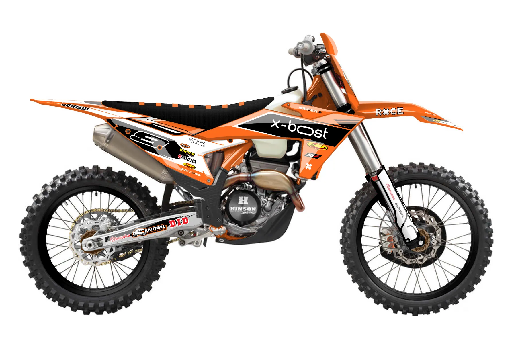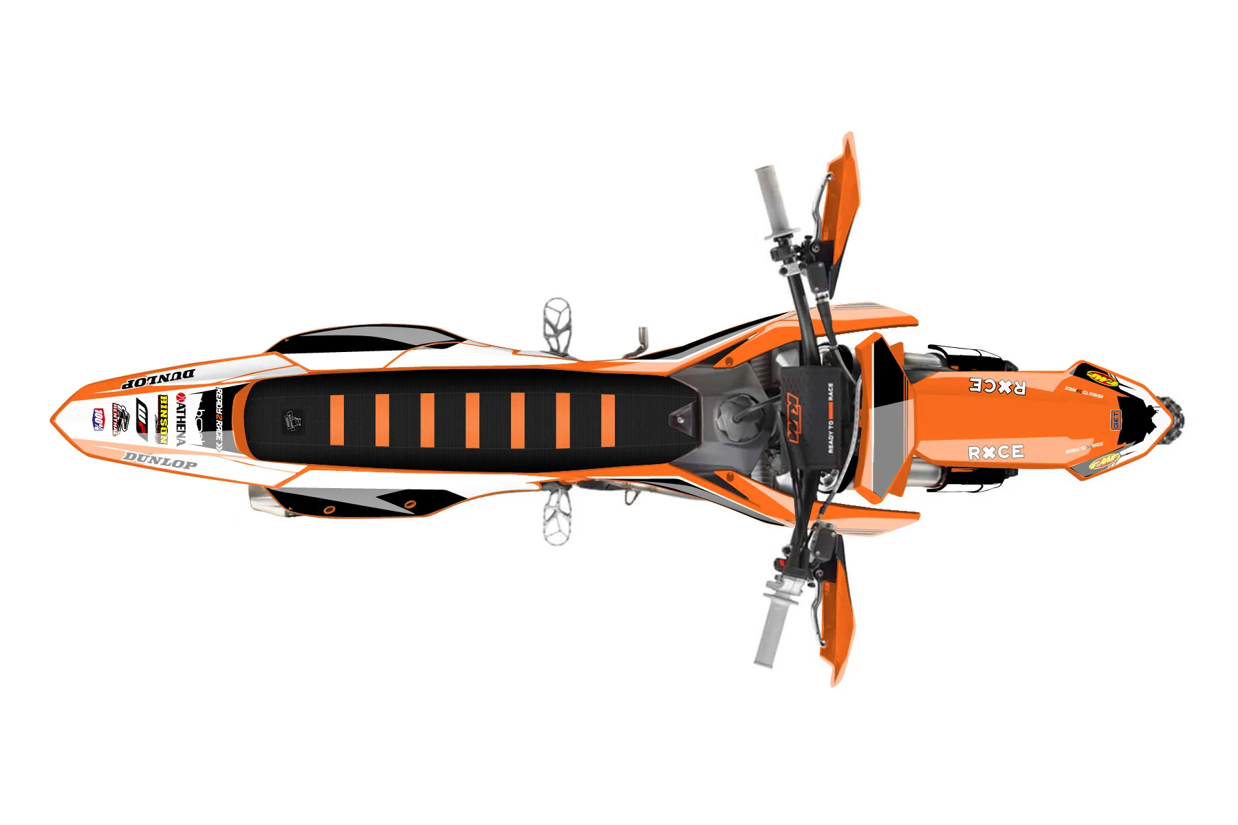 «Proven» — готовый комплект графики серии Untucked для KTM Offroad Graphic Kit KTM XC-F 250 2023. В комплекте: графика на бак и боковые облицовки, крылья (переднее и заднее), передний щиток, номерные таблички, защита вилки. Материал: ПВХ-винил 80 мкр с холодной ламинацией 300 мкр, общая толщина 380 мкр; покрытие глянцевое или матовое на выбор. Устойчив к UV-излучению, воде, бензину и мойке высокого давления. Клей акриловый на сольвентной основе — постоянный, для гибких пластиков. На простых поверхностях монтируется без нагрева; для сложных изгибов рекомендуем фен. Этот пресет можно заказать как есть или взять за основу в конструкторе: поменять цвета, добавить стартовый номер и свой бренд. Производство — 3–5 рабочих дней, доставка по России СДЭКом или Почтой, по СНГ — курьерскими службами.